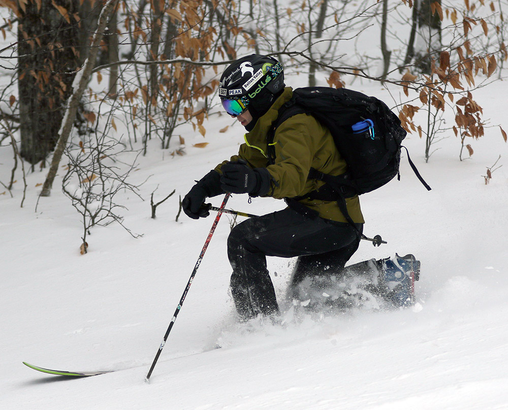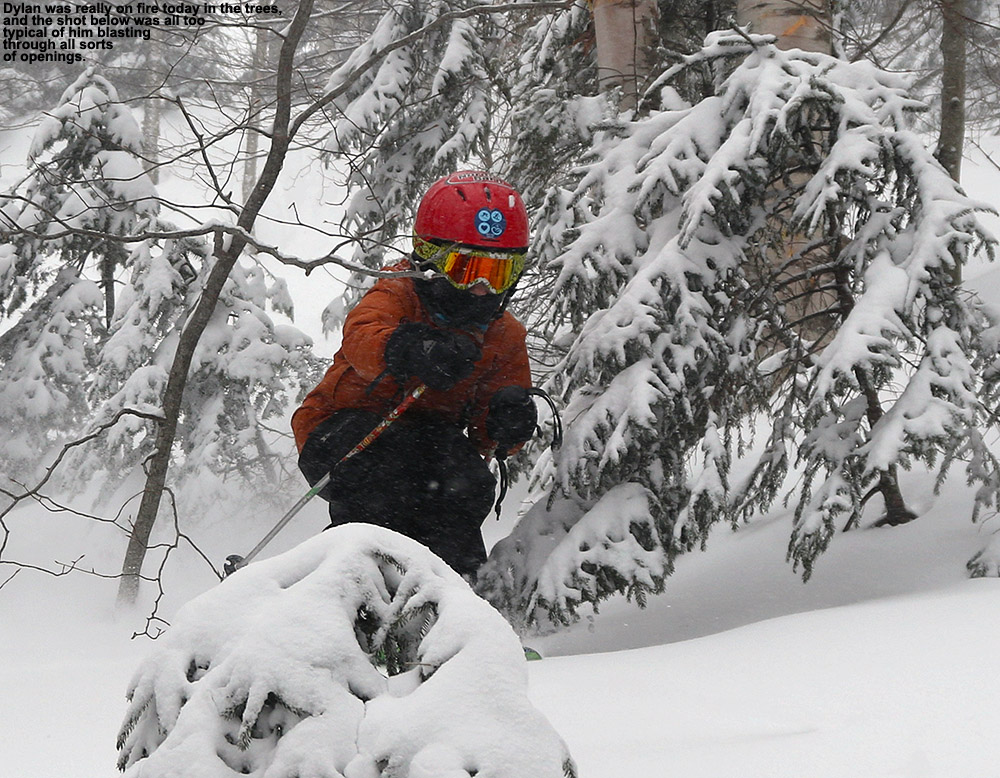 Well, the weather setup leading into this weekend was a 4 to 6 inch snowfall yesterday; so it came just in time for weekend turns.  Somehow, there came to be a bit of a crust on top, but unlike last weekend, it was paper thin and didn’t really affect the non-groomed terrain.