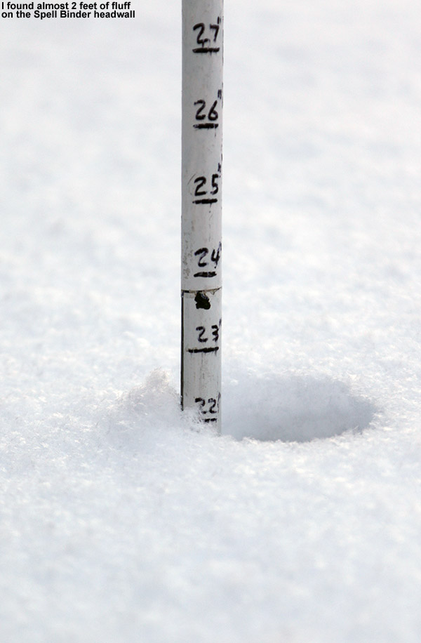 Sometime around Monday or Tuesday of last week, I began hearing about a proposed nor’easter for the New Year’s weekend. The weather gurus on the ne.weather newsgroup were going nuts, as this could be the first big storm for the coastal cities in a number of years. A clipper type low along the northern tier of the U.S. might merge with a storm coming out of the south, and Boom!, bomb out as a nor’easter off the coast. Although the southern storm pretty much went off the coast down south, the situation was set so that the northern low transferred its energy and made a low off the coast anyway. Two friends, Dave and Chris, came up from southern New England, and as Saturday progressed, we watched the storm dump plentiful snows across New Jersey, Philly, New York City and many points down south of us. Some areas of New Jersey were in the bull’s eye with over two feet of snow. The latest report I saw for Mountain Creek ski area in NJ was 29 inches. The Catskills also got some heavy bands of snow, I saw Hunter Mountain reporting 30 inches. Overnight Saturday, the storm worked its way up into northern New England, and by early Sunday morning, Sugarbush was reporting 10 inches. This number would swell to 16 inches by the end of the day, and 24 inches by Monday. Click through to see the full Sugarbush report with images.