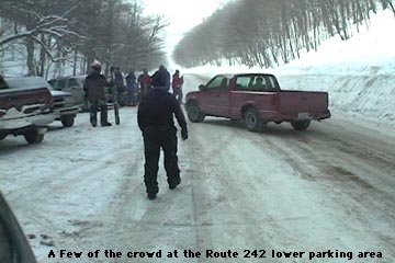 Our total vertical skied was approximately 700 feet, which was a nice run for only about 400 vertical feet of very easy hiking. At the parking area it felt like the local version of Grand Central Station for backcountry skiing. There were numerous cars, lots of people hanging out, and skiers pouring down off of both sides of the road enjoying the powder. James said it felt like a local backcountry Mecca (in reference to the number of people). Although a few of the people were from our side of the road, most came down from the Jay Peak side, riding the lifts and then catching a beautiful long run all the way down to Route 242. Some people had cars waiting for them, some hitched rides, and some looked like they had no idea where they were. It was an awesome scene to see though, with all those folks out there enjoying the snow. I’m thankful we weren’t skiing the other side of the road though (the Jay Peak side), as the number of skiers on those slopes had even that vast amount of terrain tracked up quite well. I had always thought of heading that way when skiing Jay Peak, and had no idea how many people did it. There was a continuous flux of people coming through that area all day long, with cars pulling in, parking, leaving, people looking for rides, giving rides, looking for people that they had lost, etc. etc. etc.