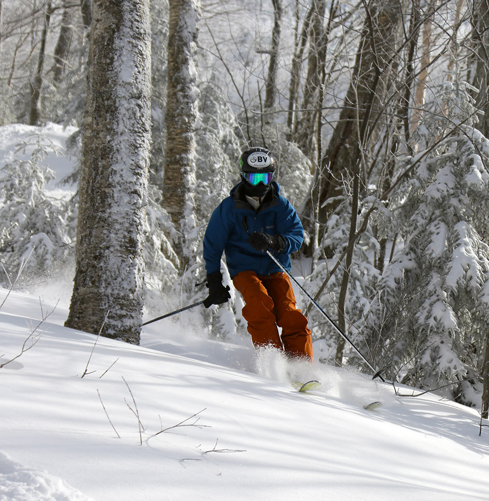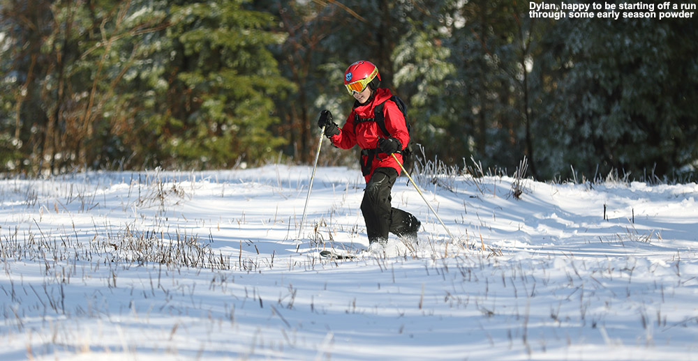We played out in the snow for a while with the boys, and then in the mid afternoon I had to decide if I wanted to get out and make some turns in the new snow. Ideally I was looking for a place where man-made snow had been put down as a base, but unfortunately most of the mountains that had been making snow were actually opening for lift-served skiing. I thought about Sugarbush, since they aren’t opening until tomorrow, but they’ve been a bit testy with people earning turns in recent years and I didn’t want to drive over just to get turned away.