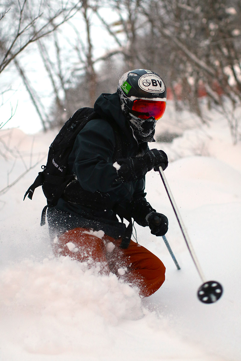 I was still looking to earn some turns in the fresh snow, and since the Wilderness Lift hasn’t been open since Sunday, I pulled the skins back out and made my way up to the Wilderness Summit. When I arrived at the summit (~3,150’) I noticed that the snowpack was close to level with one of the benches up there, and with typically a couple more weeks of snowpack gain to go based on the Mt. Mansfield Stake Data, that’s a good sign of how the higher elevations have caught up from the slow start in terms of snowpack. So despite the lame initial stages to snowpack building this season, the storms of the last couple of weeks have really helped it catch up to near normal in the highest elevations.
