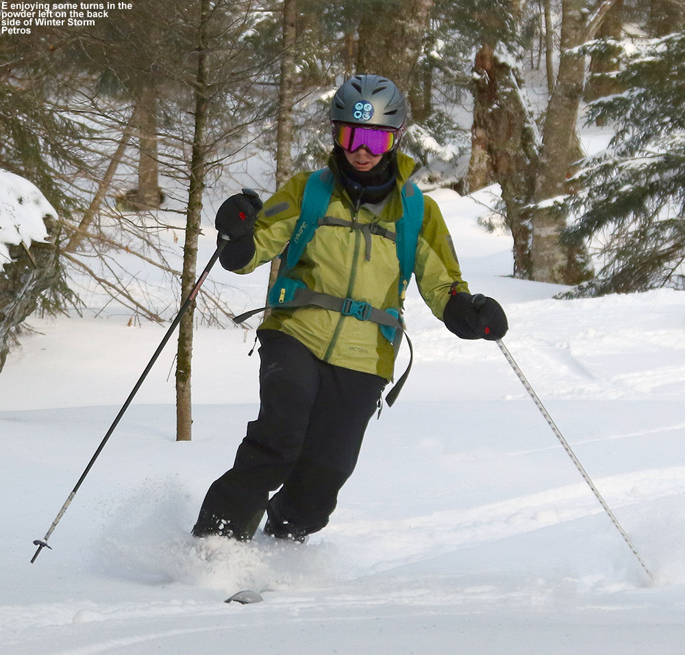I shot various video clips throughout the runs we took, getting a chance to try out E’s new Canon PowerShot ELPH 510 HS camera. Her old Canon PowerShot SD700 IS from several years ago finally had to be retired from regular service since there was a crack in the LCD screen that made it unviewable, but it had served us quite well and we went back for a new one in the same series. In the five years since we got her last camera there have naturally been some huge improvements in the technology. This new Canon has a touch screen, a 12.1 megapixel sensor, which is twice what her old one had, a 12X optical zoom versus only 4X before, and most importantly for today’s ski outing, her new camera shoots full HD 1080p video.