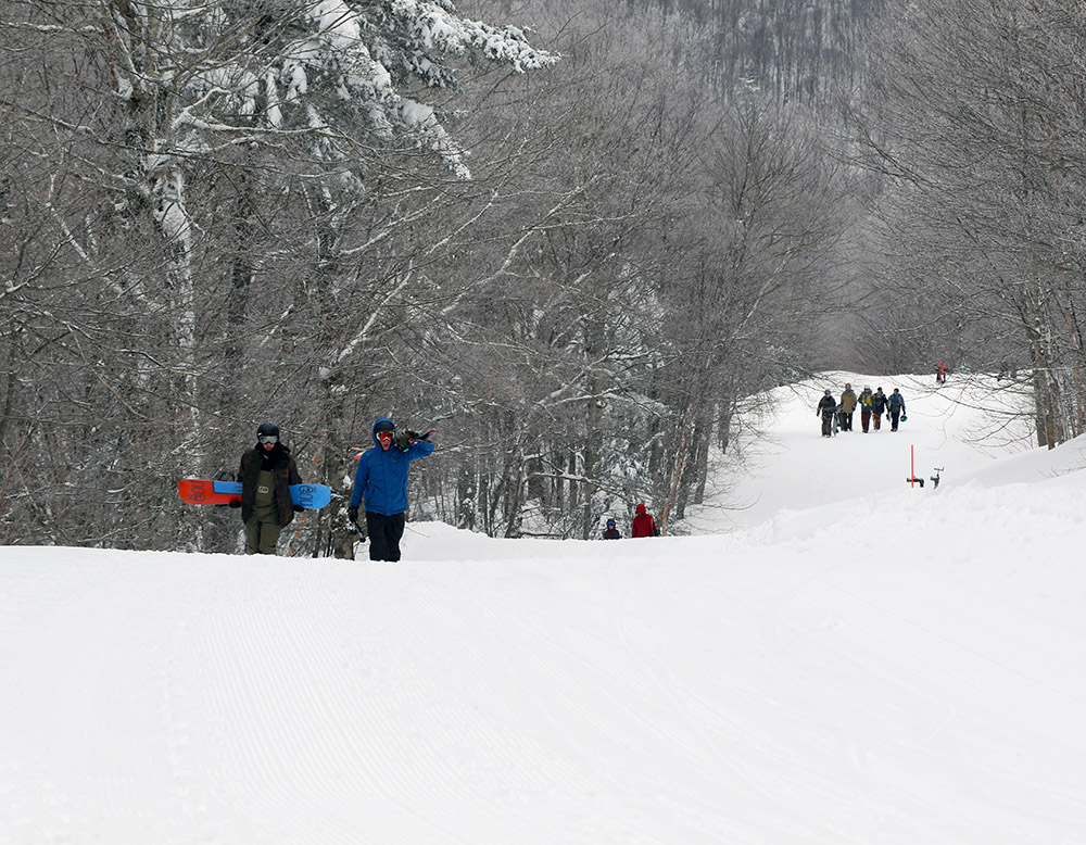 I got myself down onto North Slope, and worked the best I could to ride the berms of sand-like granular snow along the edges of the trail. Access to this type of snow gradually increased as I descended, and I was able to burn out my legs pretty well with lots of tight turns thanks to those soft lines. The final descent of North Slope above Crossover and on to Dalton’s was the best part of the run, and I pushed my legs hard enough with very short radius Telemark turns that I felt good calling it an afternoon. I’d seen enough of what was available, and had enough close calls and unnerving situations with the Teles on the upper mountain, that leaving was easy. As I skied down the last slope to the lodge, I heard a guy mention to his friend that he was going to see if he could turn in his ticket and get a refund or voucher. I don’t blame him, since with the combination of terrain and conditions probably put the day in that bottom 10% for the season.