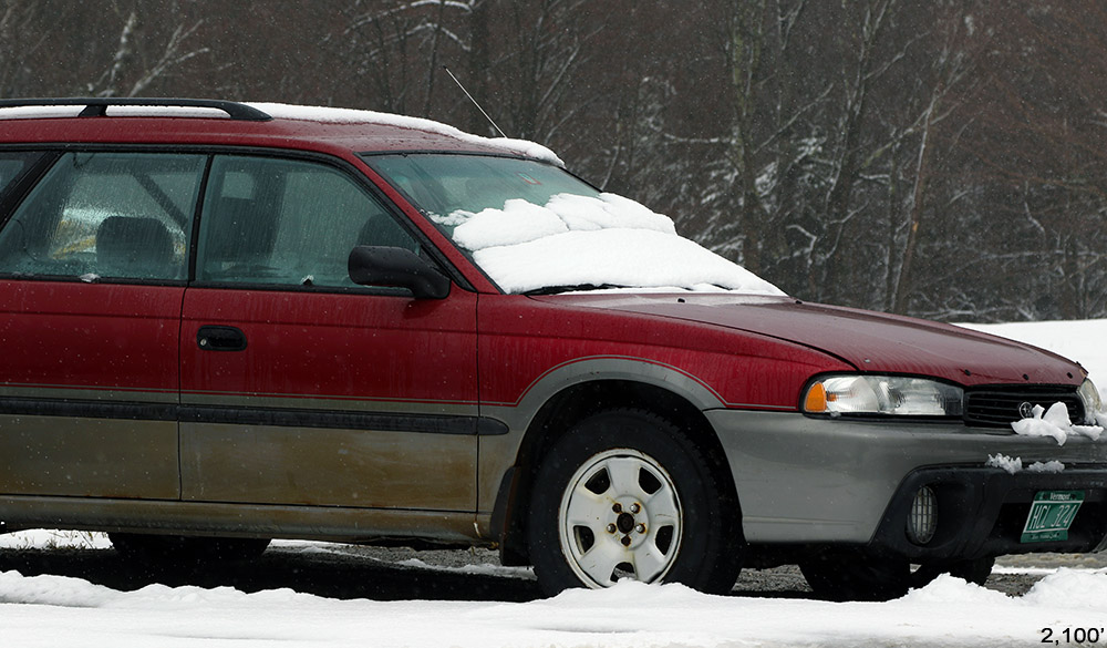 With the clear skies, it was a chance to finally see how the snowfall had played out in the mountains on our drive to the resort. The first thing I could see was that accumulations of white were just painting the tops of the ~2,000’ peaks across the Winooski Valley from our house. Our next view was of the Worcester Range, which was white for about the top 1,000’. The real dramatic views came when we finally saw Mt. Mansfield though, where the alpine regions were just blazing white above the touches of green foliage in the valley. Everyone in the car was stunned by how white the mountain looked, and E pulled over so I could get a few pictures from a good viewpoint.