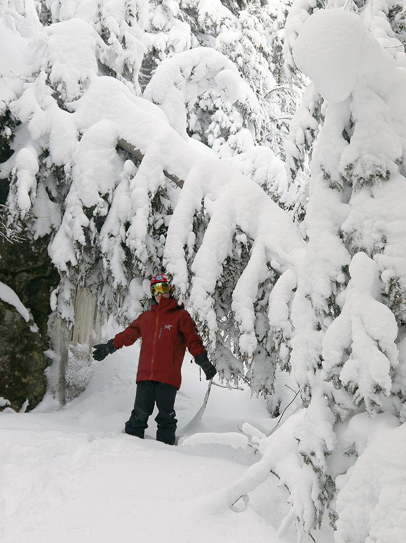 The campground was having an all-you-can-eat pancake breakfast so we stopped in there and had our fill. I enjoyed the batter dispenser that they had – you load it up with a bunch of pancake batter and it does a beautiful job of dispensing it evenly out of a funnel in the bottom. It was fun chatting with the folks that helped run the campground, they’re really an enthusiastic bunch, and why not when you’re spending the summer camping. E and I then got a chance to hang out on the front lawn in some of the wonderful Adirondack chairs that they’ve got assembled out there, and we watched the boys hit the playground with some of the other kids. I got a chair with arms that must have been 6 to 8 inches wide, and of course flat, like the arms of a real Adirondack chair should be. The wide arms are a hallmark of the chairs anyway, but these were fantastic for holding my last round of breakfast while I ate – if we get more Adirondack chairs, I’m going to be partial to those extra wide arms. It would have been nice to kick back there in the chairs for a while, but there was skiing to be done, and with the forecast calling for clouds moving in later in the day, the sooner we got up the mountain the better.