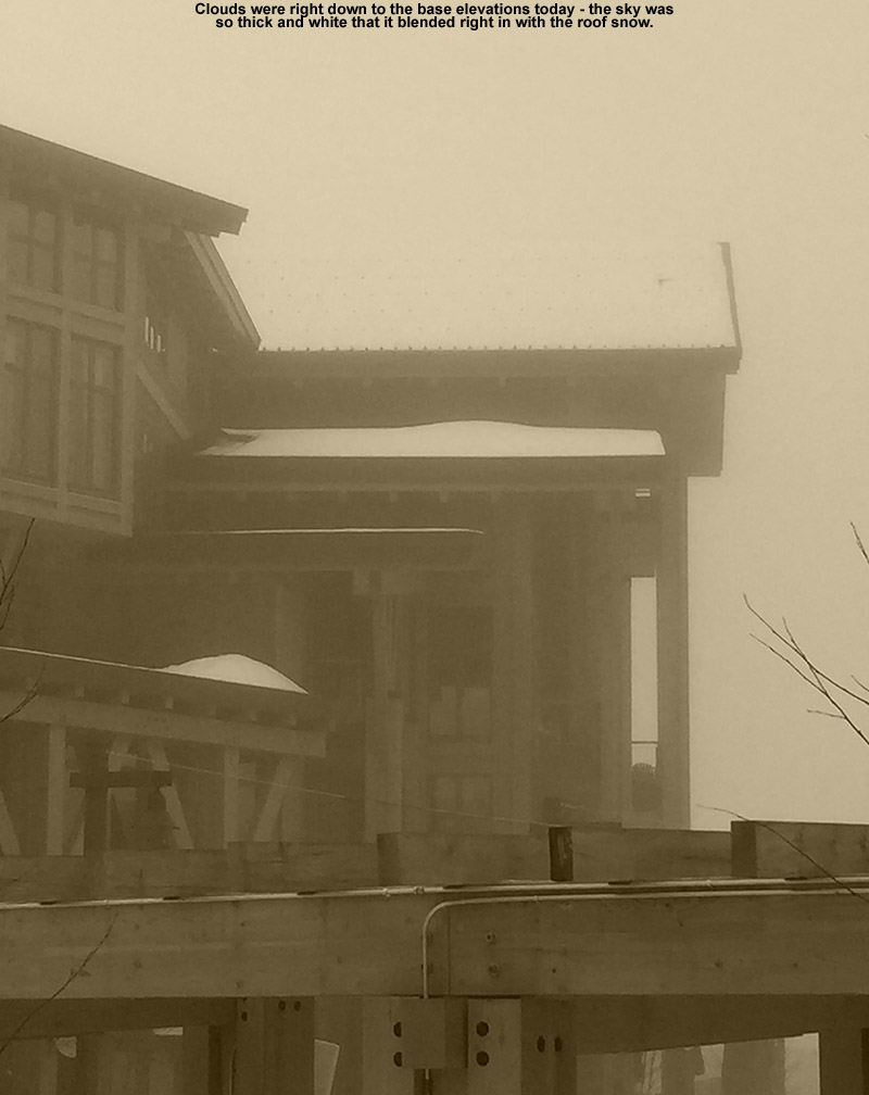 As clouds begin to lift, an image from the web cam at Stowe Mountain Resort reveals a fresh October snowfall from last night.