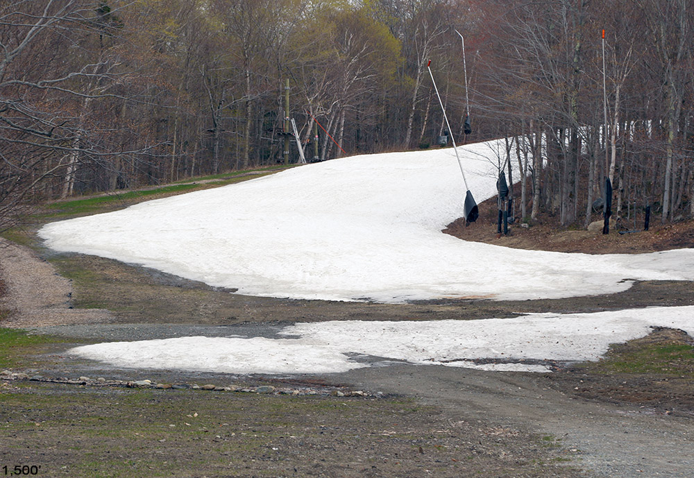 I’d been checking on snow depth during my ascent, but due to all the snow this week, there was a lot of unconsolidated stuff under the current storm’s bounty and it was difficult to assess just what came down overnight. I’d been getting measurements of roughly a foot or more since I’d started at the base area (~1,500’), but when I stuck my measurement pole into the snow at that ~2,800’ mark, I got an overall depth of 18 inches. Combined with what I was seeing around me from other skiers (check out the pictures from adk and from Powderfreak at the American Weather Forum), who were having little if any issues touching down on obstacles below the snow, the potential turns were looking really good. National is quite steep and while it wouldn’t typically be my first choice for early season skiing, Mother Nature has really been dishing out the snow on Stowe this week. It looked ready and I was about to test it out.