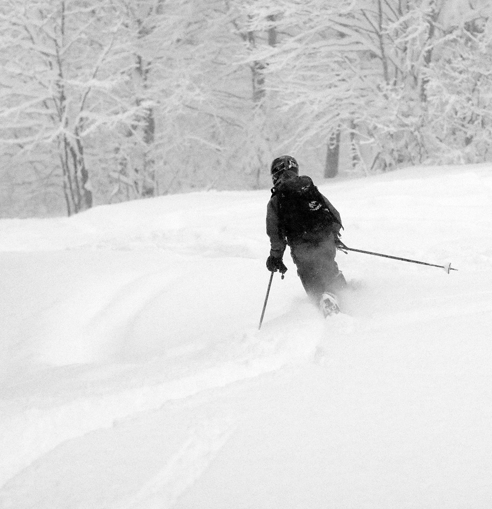 We started off the afternoon as planned with some lift-served runs, and found some marginally sticky conditions in places. None of the surfaces were too bad in that regard, but there was definitely some snow that has not transitioned all the way to corn with the rounds of snowfall earlier this week. Temperatures were a bit warmer than yesterday, sitting in the upper 40s F down in the lower elevations, and somewhere in the 30s F at the summit elevations. On piste coverage at Stowe remains excellent, with 100% of trails open today – it’s much more typical this season, and nothing like last season when that huge March heat wave really sapped the snowpack. Dylan worked on his Telemark turns and was making strides on his bad side turn, and Ty on his alpines was throwing himself off all the airs he encountered.