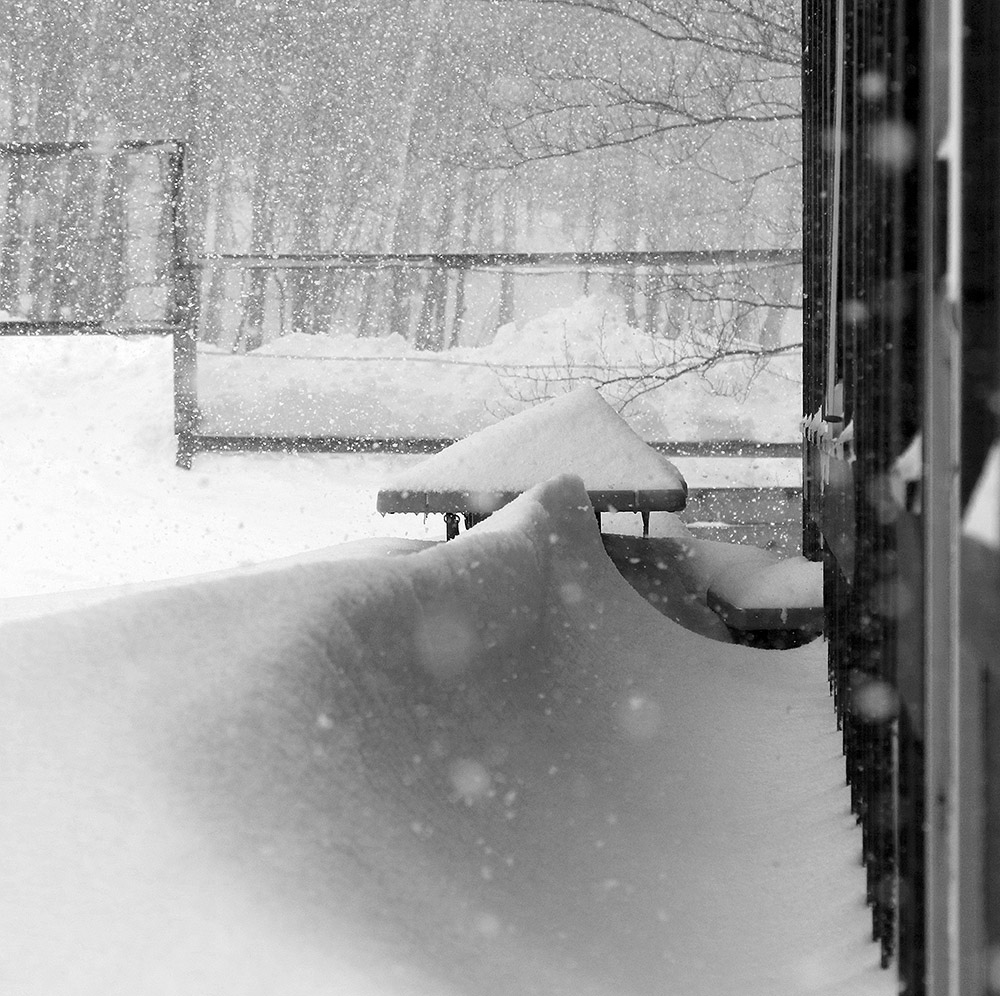 Despite intense scouring at the top of Bolton Outlaw, the Wilderness Summit itself was sheltered from the wind and had some nice snow. Indeed, all of Peggy Dow’s above the first big bend had plenty of deep snow and some great powder turns were made. Once I neared the junction with Heavenly Highway I initially went wide right to avoid the icy, wind-scoured face, but I saw that another skier had taken the chute that bypasses it on the left. That area was protected from the wind, so I followed that skier’s tracks and found reasonable coverage. Down on Old Turnpike the first couple of steep corners were naturally icy, but there were lines to bypass the most exposed spots, and soon I was down into the protected lower areas that we skied yesterday. I actually used the same route as we did yesterday, until I decided to mix it up and check out the Wilderness Lift Line instead of Lower Turnpike. The lift line was actually fine, even if didn’t quite have the protected coverage of Lower Turnpike, and there were several tracks on it. From the base of Wilderness, I headed back to the car and had time to do a little long-range shooting with Chris’ Canon EF 70-200mm f/2.8L IS II USM paired with his Canon Extender EF 1.4 III. That’s a full frame equivalent to 448 mm on my 30D, so there’s some great reach with that combo, and you’ve still got f/4 speed. It’s certainly not a setup that you can carry lightly though; with the lens hood on it’s 15 inches in length and the weight is around 6 pounds, so you definitely know it’s there.