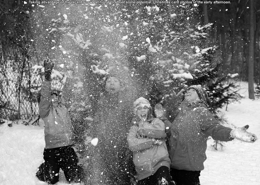 I couldn’t convince anyone else to go up to the mountain with me, since the boys were having way too much fun sledding in the yard, and even with the lull in precipitation, E wasn’t thrilled with the weather situation. I had to go it alone, so at around 10:30 A.M. I got my ski gear together and loaded up the car. I was just about to drive out when I got a bit distracted. I saw the boys making runs on their sleds, and they were having a ton of fun. After we talked for a bit, we decided to have them head down onto one of the lower runs on our property that had a fairly large jump. My friend Chris has lent me his Canon EF 70-200mm f/2.8L IS II USM lens for some testing, and since we’re unfortunately past the fall soccer season, this seemed like the perfect opportunity to put the lens to work. Let’s just say that f/2.8 rocks, and even with only winter solstice light for my 30D to work with, I was able to get down to around 1/2000 sec at ISO 200. The boys put on quite a show, and I was able to capture some nice shots during the test.