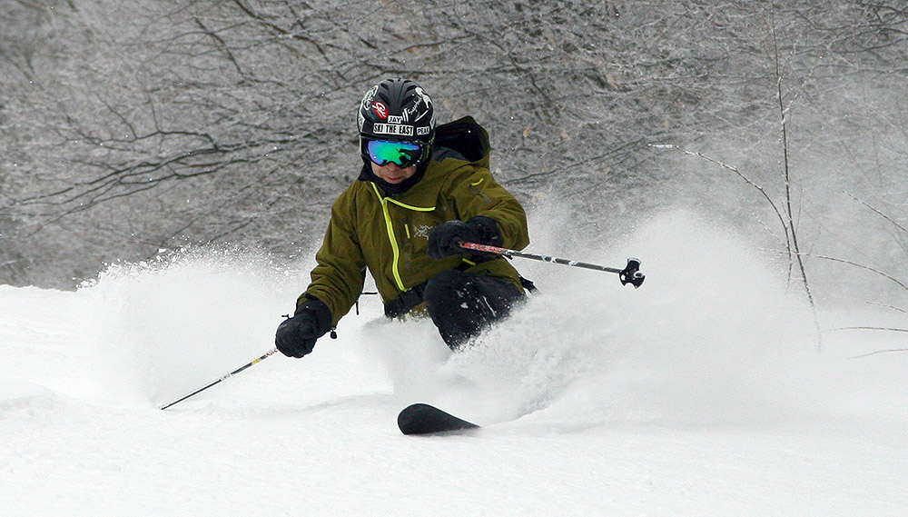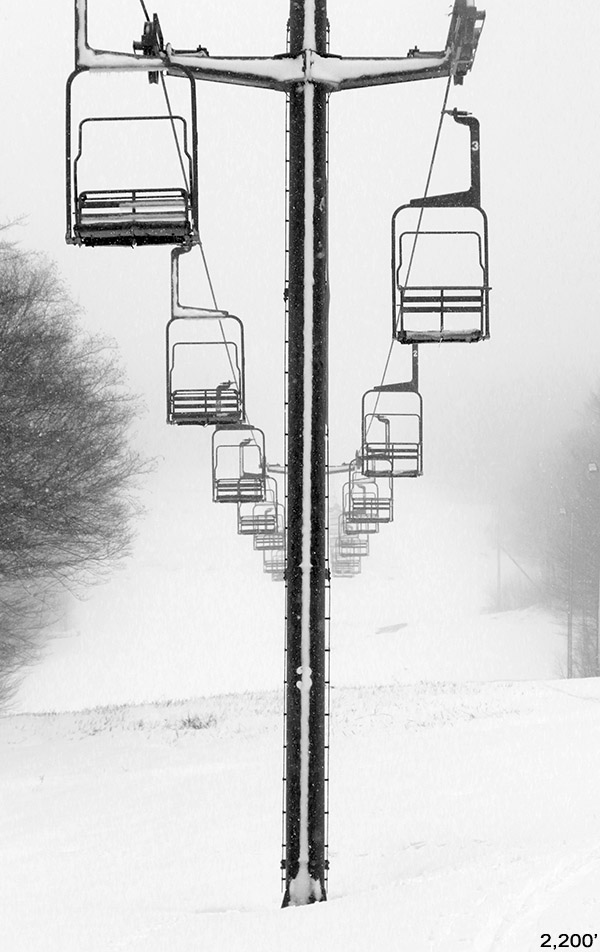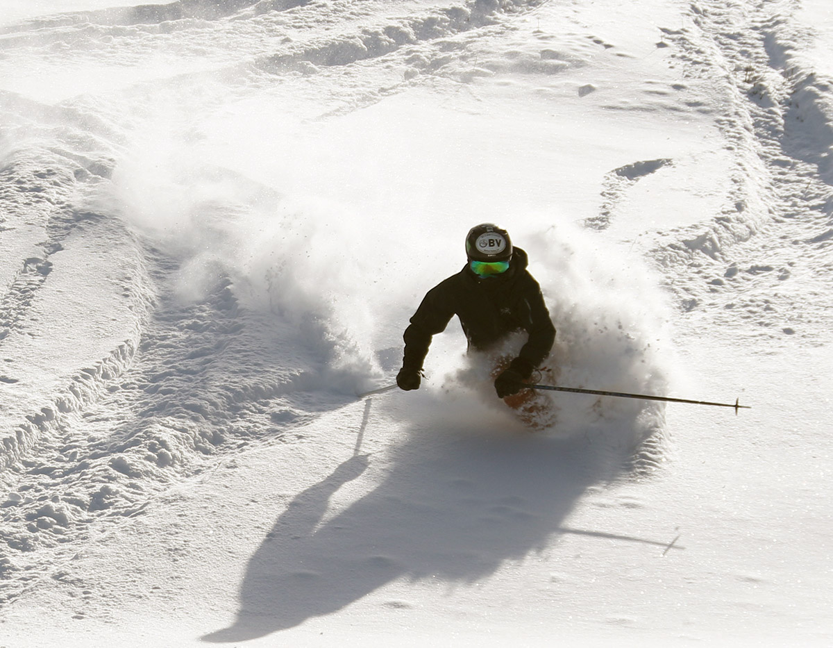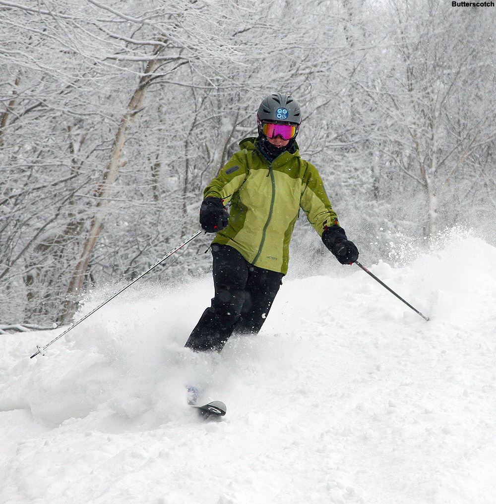 Although I saw some good potential in some of the glades, I stuck with my plan to run North Slope all the way out to Lower Turnpike and ski down there, because after yesterday’s experience, I knew it was a sure thing in terms of coverage. That actually made for quite a unique tour overall, one that brought me from the Nordic/backcountry network out to the alpine network. Most of the time I’m using the lifts and going the other direction, so this was a fun change. North Slope has a nice little connecting trail with Lower Turnpike that I’d never seen. There were only a few tracks on Lower Turnpike, so there was plenty of fresh snow, but it didn’t ski nearly as beautifully as yesterday. The snow had settled a bit more, some wind affected it in spots, and it was slow due to the cold temperatures. So while fun, it couldn’t compare to yesterday. I finished off my run with an interesting route through the Village below the Liftline Condos – it actually turned out to be a pretty slick connection with some backyard powder turns that dropped me right down onto Broadway.