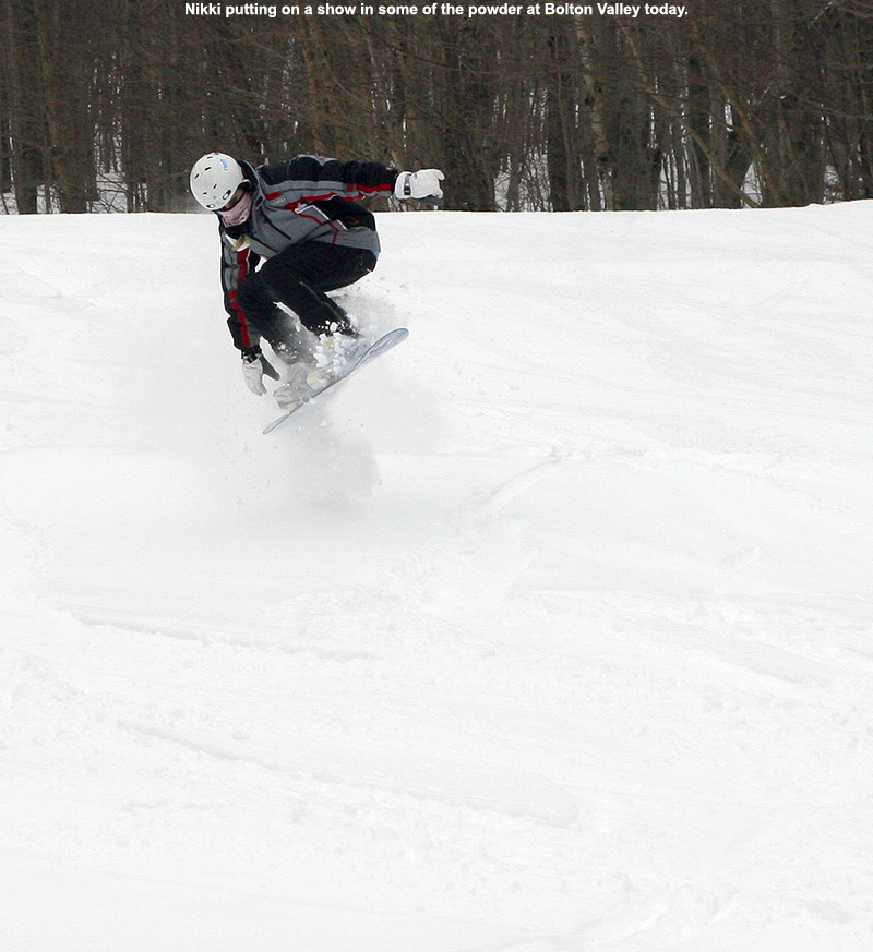 After our morning session at Bolton working with Josh and Mike, we headed off to Stowe for BJAMS ski program. With the recent fresh snow in the past couple of days and the bright sun of late March, the alpine areas of Mansfield looked blindingly white as we approached from the south. The overall timing of the trip was actually quite good, and we were even able to grab some lunch at the Great Room Grill before the start of program. The line for the main grill area was long, and at first I thought it might be groups of ski racers from the races going on, but upon hearing all the British accents, I quickly realized that that’s who it was. They’re certainly getting some midwinter-like conditions on their ski vacations this weekend.