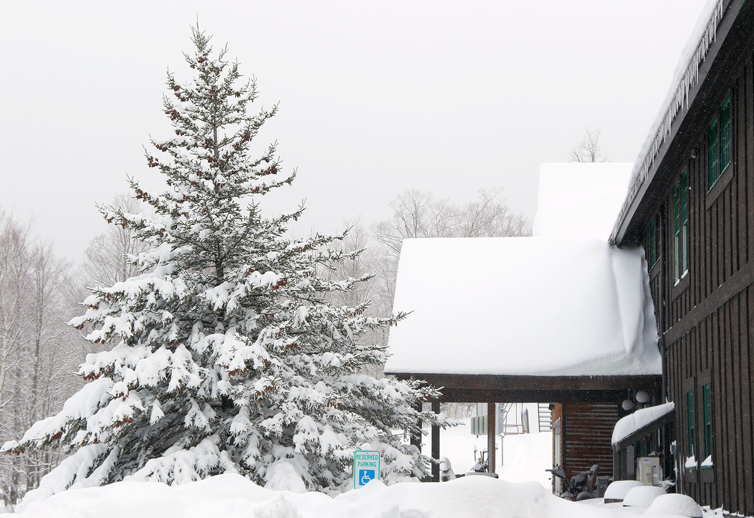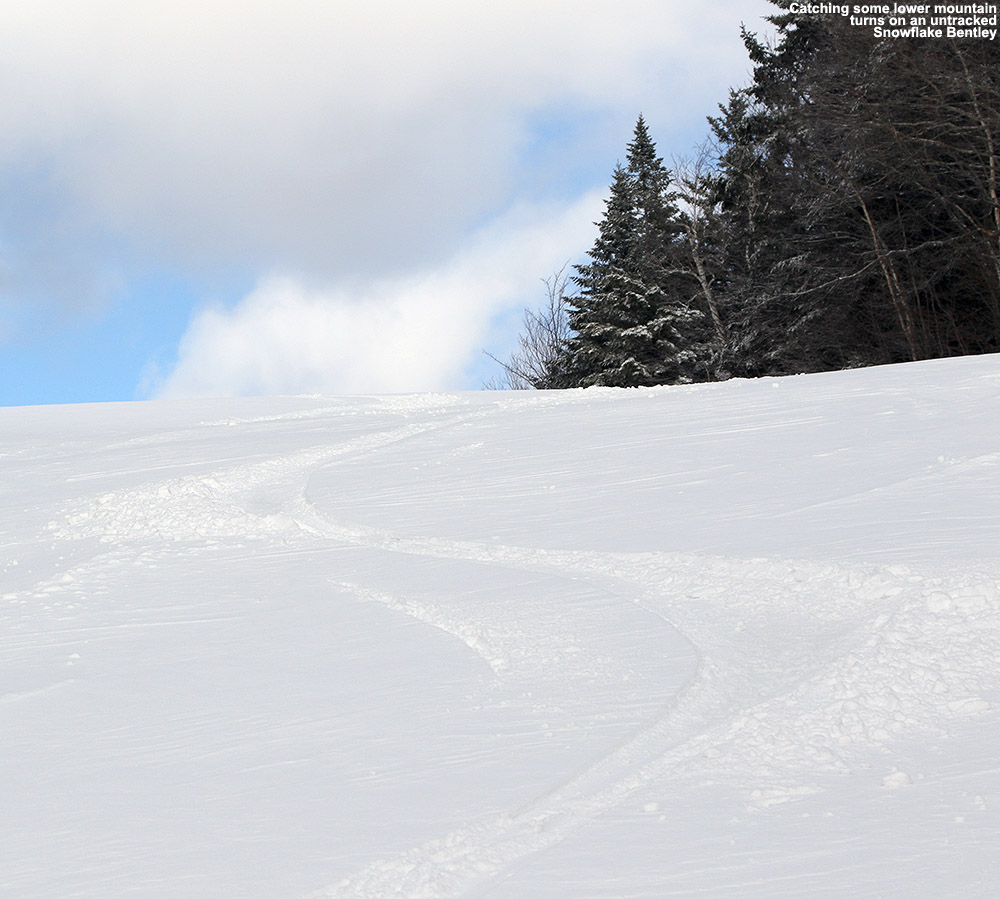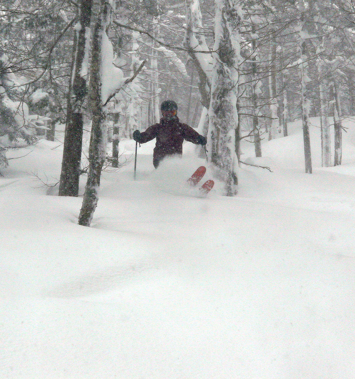 Overall, the skiing was a little sloppy in spots, but there’s generally been plenty of freeze-thaw cycles to get the snow turned into corn. We did find some snow high up in the bypass chutes that was almost wintry in consistency because it was so protected from warmth. Hayride was fun, with some steep bump lines, although they were generally spaced wider than our preference. Lower National had much better bump lines as is typical. We also had some fun cruising on Lord. As usual during the corn harvest season, we had our own corn harvest of sorts each run as everyone got the snow off their skis to supply snowballs for lift tower and chair target practice.