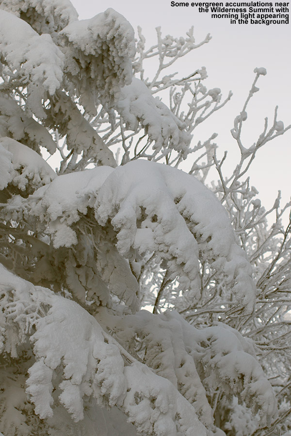 Here’s the summary of the snow depths atop the old base up to the Wilderness Summit at various elevations, with the 500’ value being from our house: