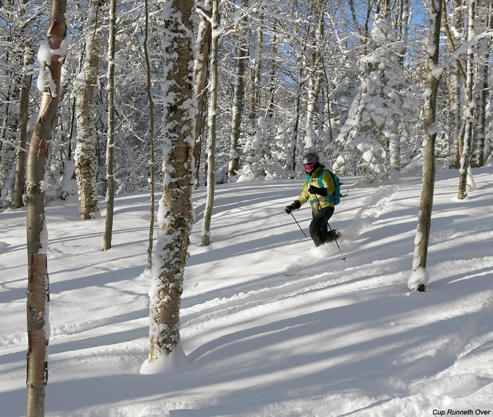 In any event, the powder turns were excellent this morning, with my only complaint being that it was “slow snow” due to the very cold temperatures. Even with 115 mm fat skis keeping me afloat, I had to go steeper than the pitch of typical green terrain for a good ride – in that respect, Fanny Hill was a better choice than Lower Turnpike as I suspected. We’ve got a couple of potential storms coming up this weekend that may deliver something more like Winter Storm Goliath in terms of liquid equivalent. They probably won’t deliver the type of Champlain Powder™ we had with this event, but if they play out well they could set up the base to open a good amount of natural snow terrain.