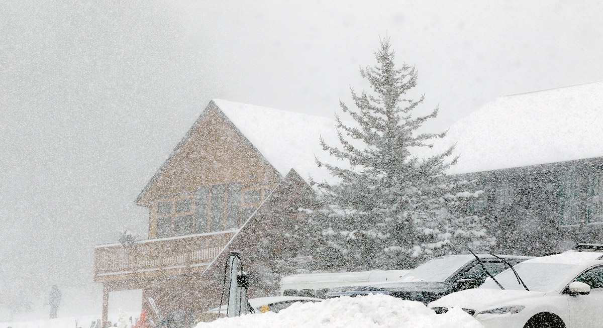 By this morning, Winter Storm Decima had already begun to deliver snow as we headed off to the resort. The snowfall rates weren’t outrageous, but it was a good steady snow and you could see that little bit of extra spring in everyone’s step knowing that training day was going to feature fresh snow. As we gathered outside the Midway Lodge for the morning’s announcements, you could just see the snow piling up on the anxious skiers ready to get underway.