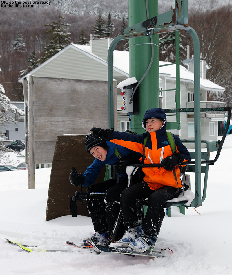 Each year in December we head to Stowe for the training day that gets us ready for our school’s ski program. E is the director for the BJAMS program and typically takes care of the logistics on one of the weekend days, while a co-director would manage the other. In the past, when the boys were younger and couldn’t stay home alone, we’d either set up to have someone watch them, or split the two training days between us and each go alone. On those occasions, even though selecting the days was done well in advance, I always seemed to luck out and get the great conditions – comfortable temperatures, fresh powder, soft surfaces, etc., while E on the other hand would get refrozen crud, frigid temperatures, or whatever else you can think of that would make the ski experience less than stellar.