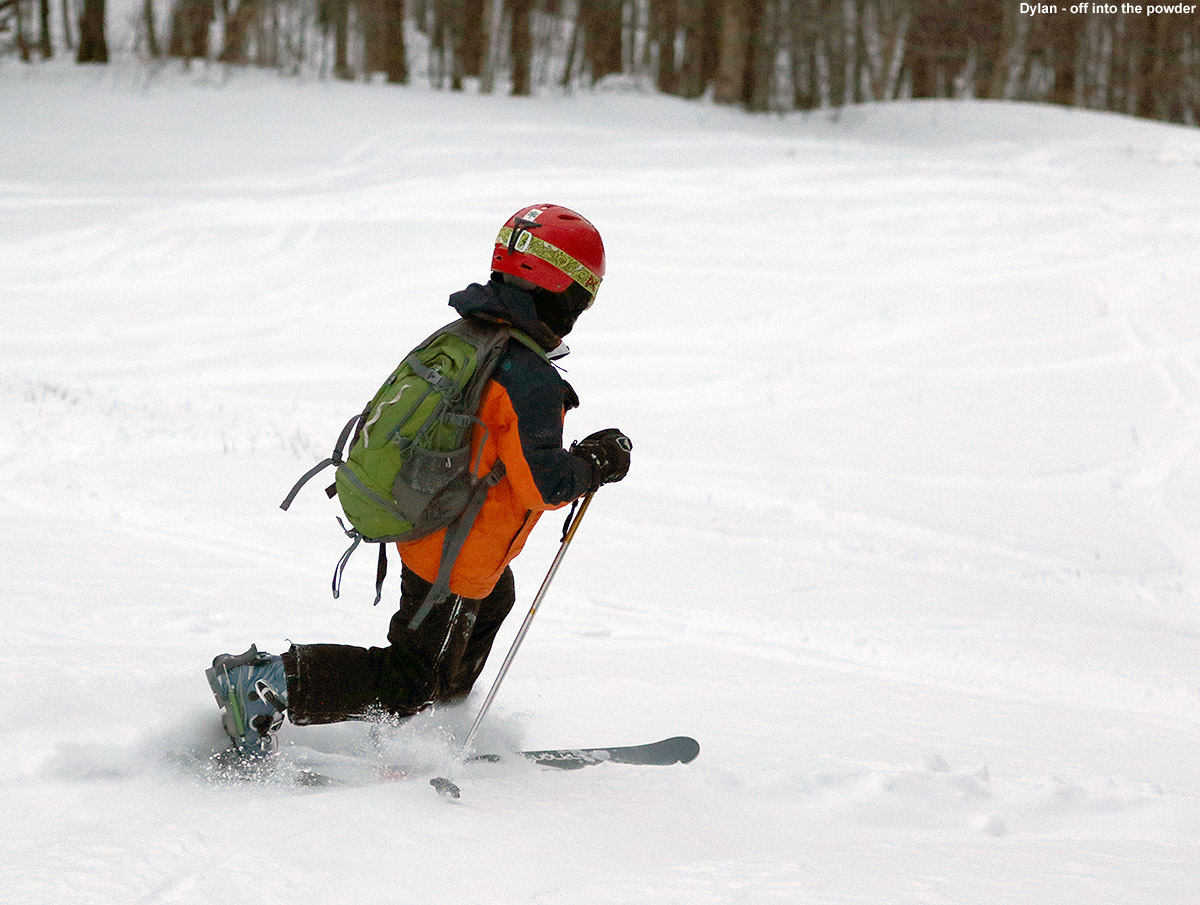 Ty happy to be working on his Telemark turns in the powder