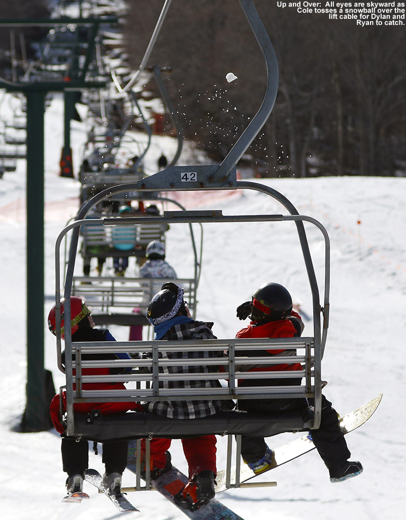 Ty was back on the snowboard today as we headed back up to Bolton Valley to take advantage of yesterday’s new snow.