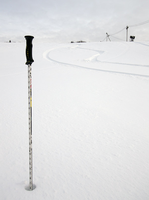 In terms of the skiing, indeed the snow quality was great, just like yesterday. Bolton didn’t quite pick up the totals that I found at Stowe yesterday though – I measured 8-10” of new snow in the Village elevations around 2,000’ or so, and I’d say Stowe picked up those amounts about 500’ lower. We measured roughly 14-15” of new snow at the 2,500’ elevation mark, and I’d say that was about the same near the 3,000’ level.