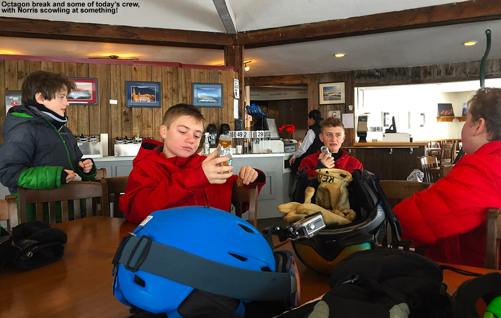 Ty and I had an appointment in Burlington this morning, which mean that we’d be arriving a bit late to our BJAMS ski program at Stowe in the afternoon. We were arriving just in time for the afternoon snows however. The first encounter was when we driving to the resort during the noontime hour. We could see snow moving in to our north as we headed through Waterbury, and it finally hit us as were rising up to the Waterbury/Stowe line near Chutesville Hill. Some fairly intense graupel was a big feature of the precipitation at that point.