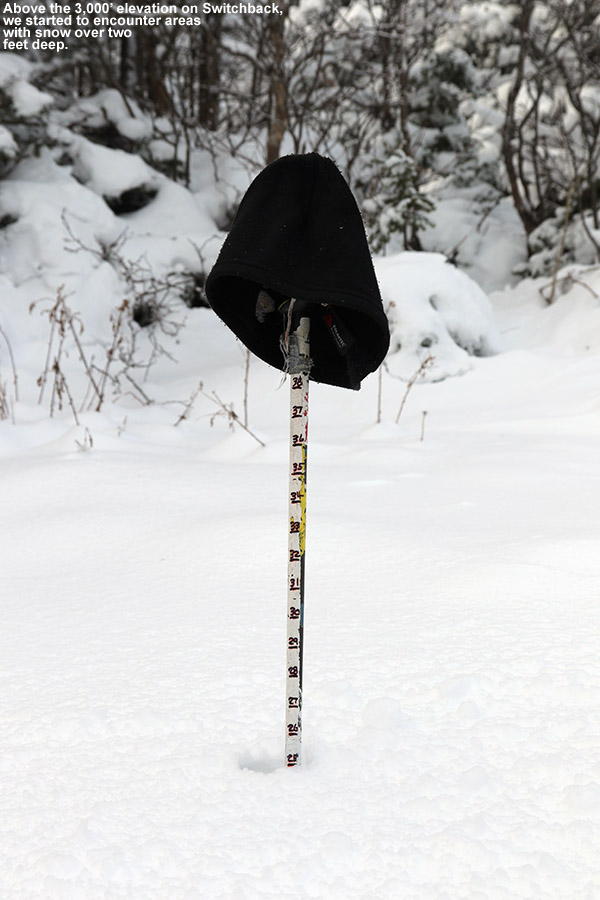 We certainly had a decent November with respect to snow in the Northern Greens, and while the snowfall slowed down a bit for the first week of December, a big change in the overall weather pattern this past week brought a large trough to the eastern U.S. and the snowfall is ramping back up. Lake-effect snows from Lake Ontario drifted into the northern parts of Vermont in the midweek timeframe, bringing several inches of fresh snow to the resorts. The recent snows were very obvious today at the resort, with 6 to 8 inches or more of powder available off piste at elevation, and several inches visible even near the base elevations. The base depths aren’t quite there to do too much exploring the off piste yet, but it was easy to get into plenty of powder simply by sampling the edges of many trails.