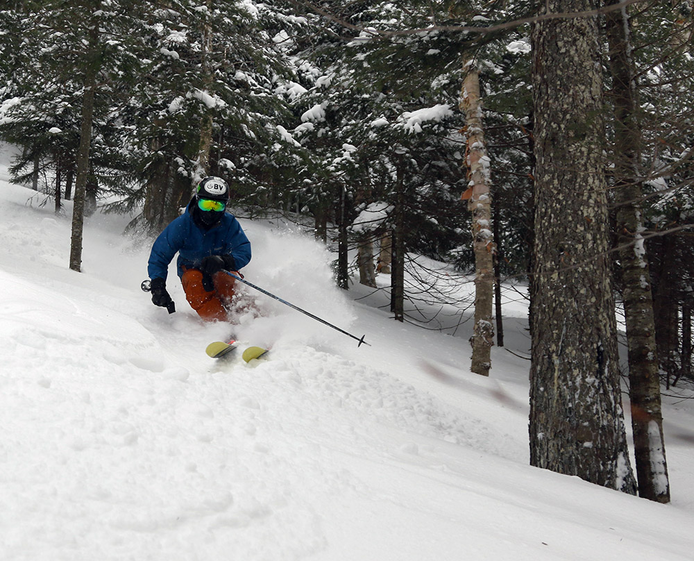 We’re currently under the influence of Winter Storm Dylan, which started dropping snow on the area early this morning. The snow started out slowly for the first couple of hours, but by 10:00 A.M. or so it had ramped up to very heavy intensity – at one point it was coming down at a rate of roughly 4 inches per hour. It continued at a steady pace, and by midafternoon we’d already picked up 6 to 8 inches of snow at the house. By that point it was obvious that there was going to be enough fresh snow for a ski tour, so I headed up to Bolton Valley while I still had light.