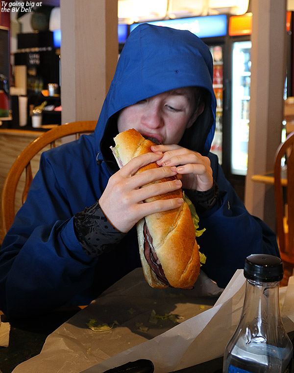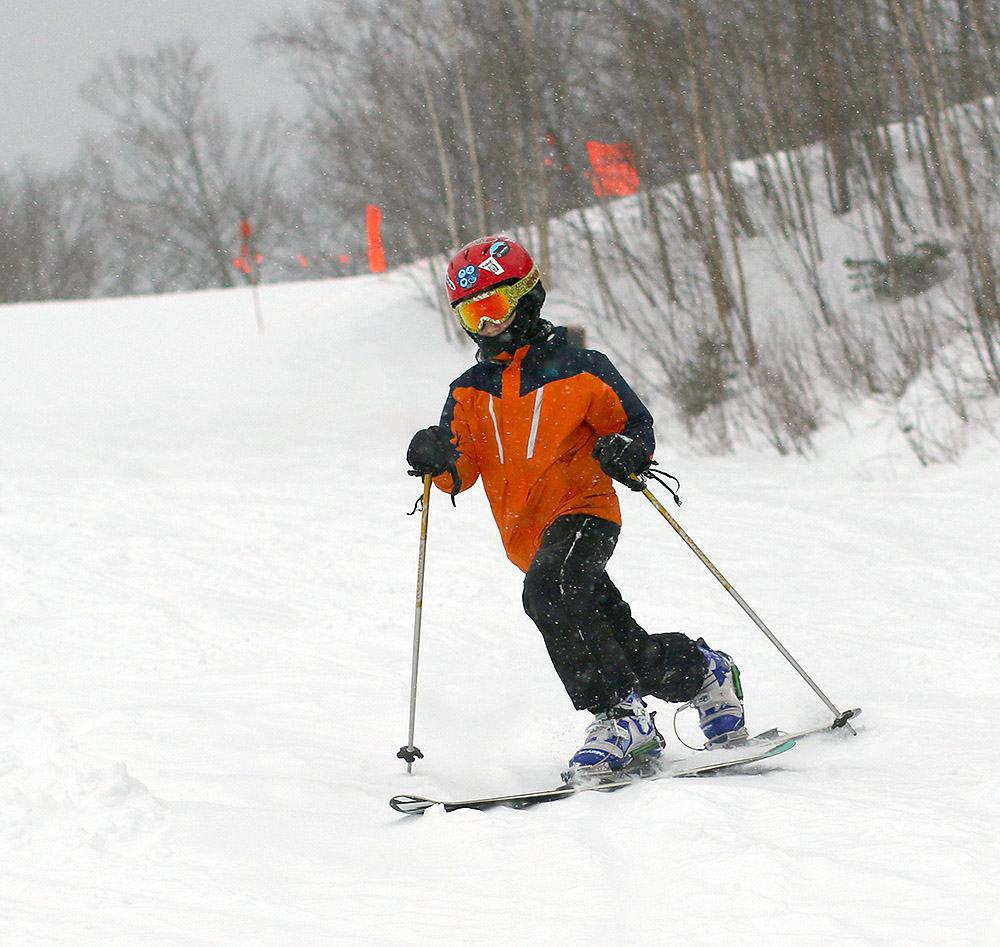 Today we were under the influence of Winter Storm Polly, a system passing through the Great Lakes that’s brought snow and mixed precipitation to the area. Although our BJAMS ski program was on today at Stowe, between the people opting out because of the questionable travel and weather, and those families that are on vacation for school break, we had substanially fewer participants than usual. My group actually wound up being just Ty and Dylan at first, although eventually Jacob joined when his group was not going to be able to meet up with him.