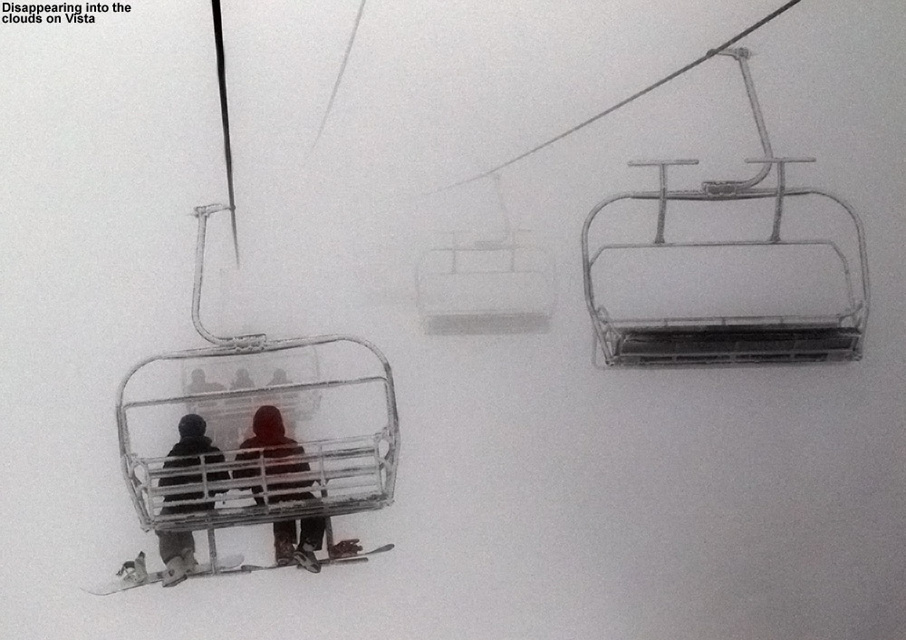 Although it’s already mid-February, today was actually the first day of the season that the whole family would have a chance to ski together. It really looked like a beauty though, with close to 10 inches of snow in the past couple of days, temperatures in the upper 20s F, and snow showers giving way to clearing skies in the afternoon. Arriving up at the mountain in the mid-morning timeframe, the resort was really humming with visitors once again. We were able to get a prime parking spot right along the edge of Broadway, geared up, and we were on our way.