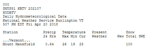Here’s a summary of the accumulations I found this morning for various elevations: