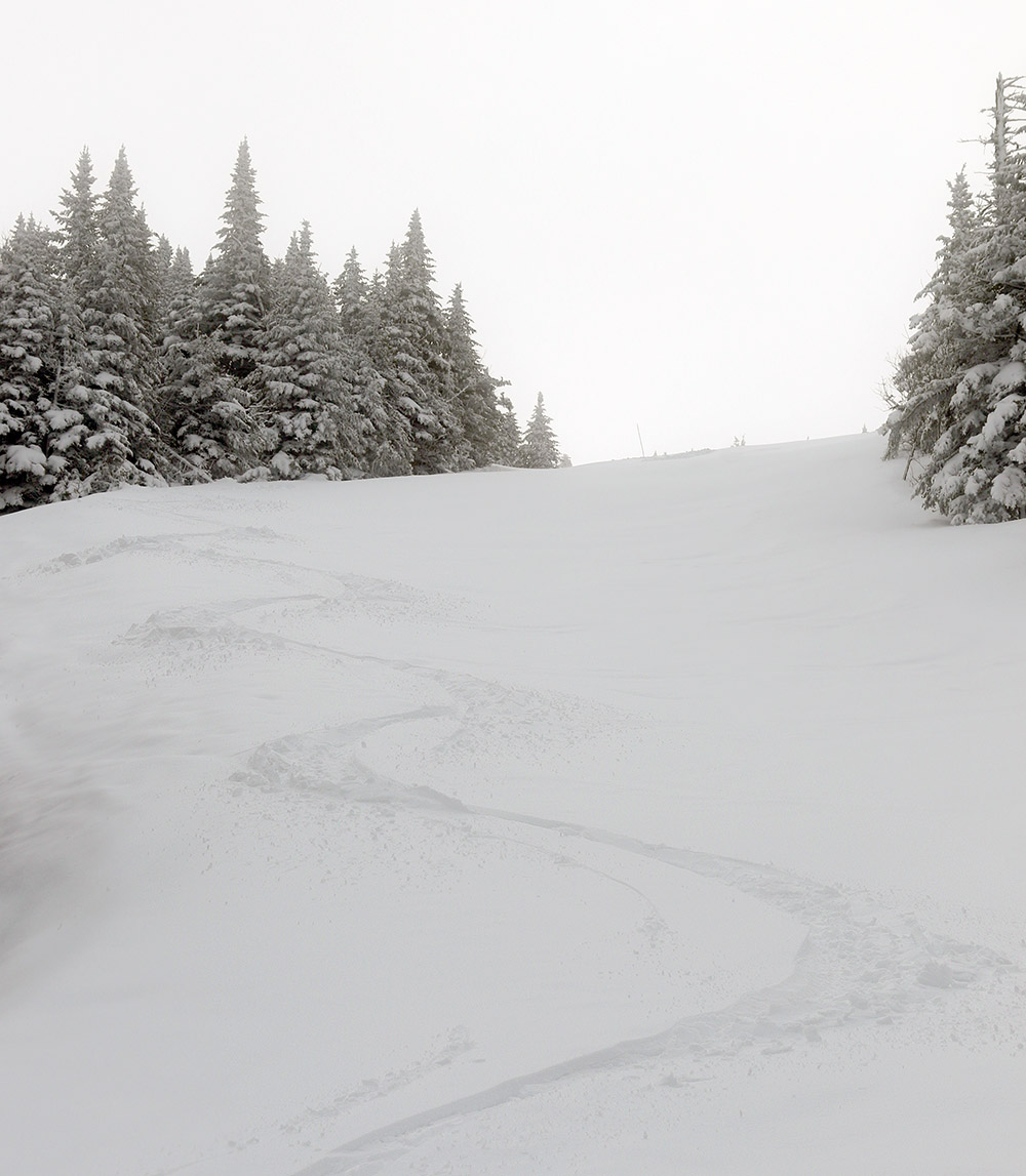 “I could tell right away as I began my descent that the density and consistency of the snow called for steep terrain, so I dove right down Spillway and that really hit the spot.”