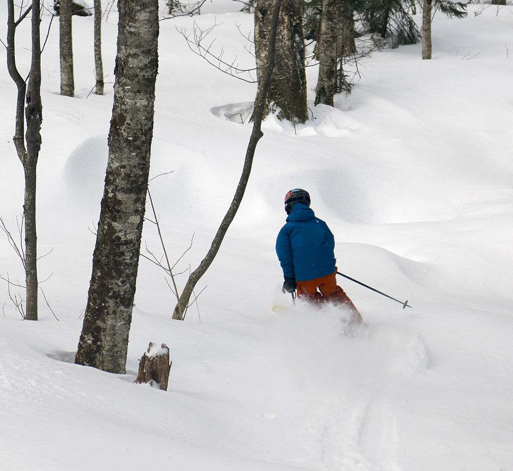 As soon as I walked up the access road from the Mansfield Base Lodge to the bottom of the Mountain Triple Chair, the possibilities were looking promising. A nice thick blanket of snow stretched right down to the base of the Standard trail, and coverage looked to continuous as far up the slope as I could see. There was enough open ground that I decided to simply hike vs. trying to skin, so I walked up the essentially snowless Lower Gulch as it paralleled Lower Standard. I did have to walk on snow at times as I got higher up the mountain and stuck more to Standard itself, but there were plenty of dry options as well if I’d wanted to take another route. I had only a certain amount of time, so I stopped my ascent after about 1,000’ of vertical near the top of Standard. There was plenty of snow to continue upward though for those interested in a longer descent.