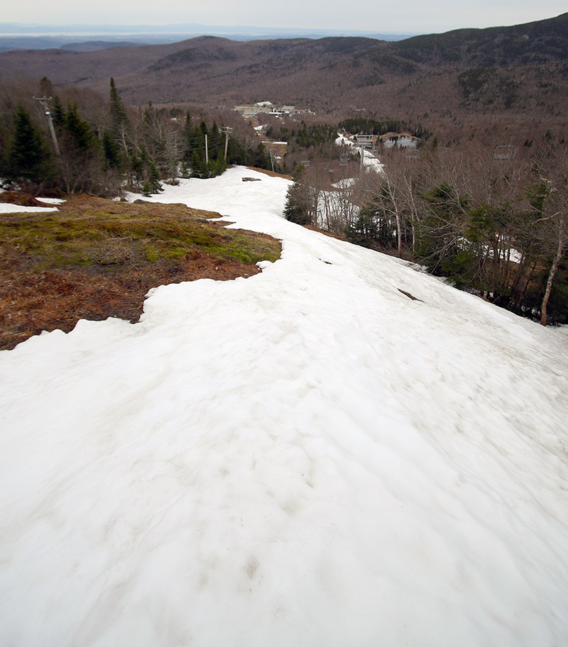 I looked out my office window at some point earlier this week and saw that there was quite a bit of white still visible on the slopes of Bolton Valley. So, when I had a bit of time with decent weather this afternoon, I decided to head up for a ski tour to see just how much skiing was still available.