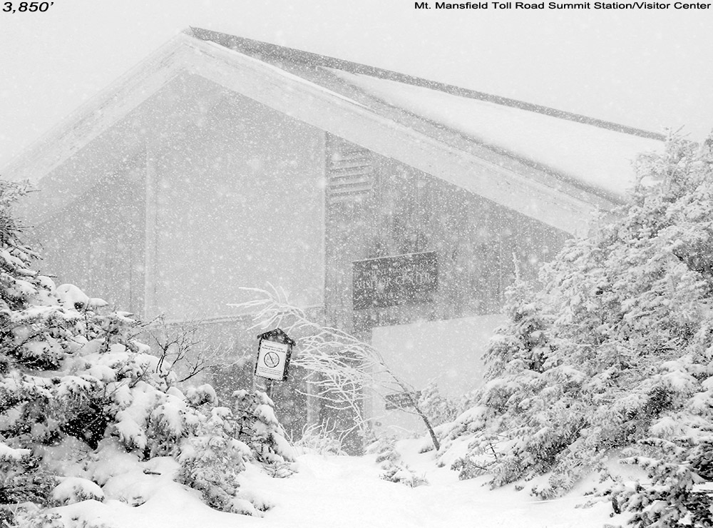 Snowfall picked up when I was on the Mt. Mansfield ridgeline by the Visitor Center today, with huge flakes and reduced visibility for a time.