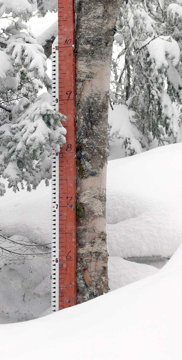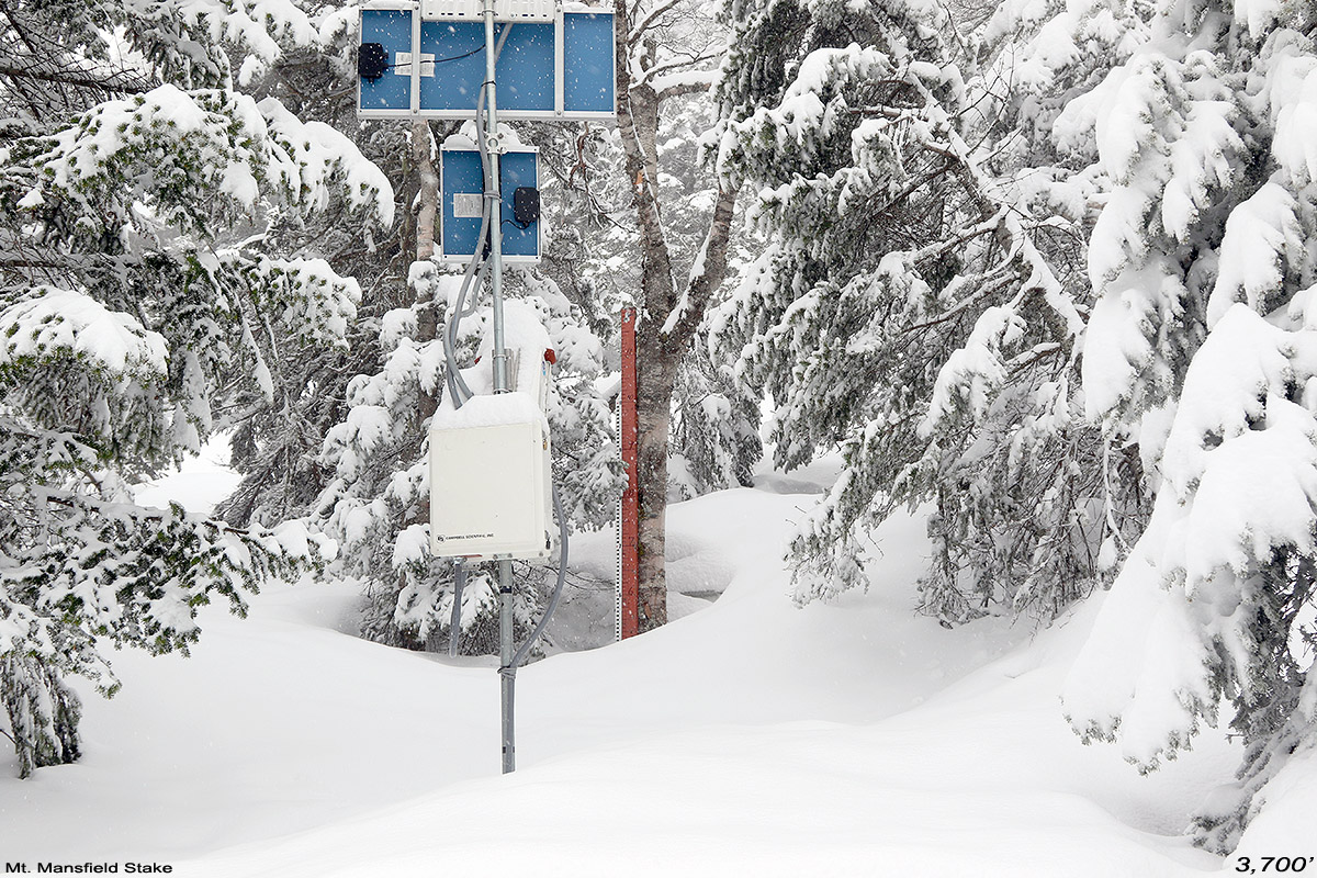 Stopping for a look at the healthy snowpack still present at the Mt. Mansfield stake as I pass by during today’s ski tour