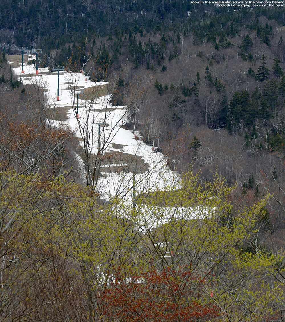 Some snow hanging on over by Stowe’s Gondola terrain while the leaves just start to emerge on the trees at the base elevations