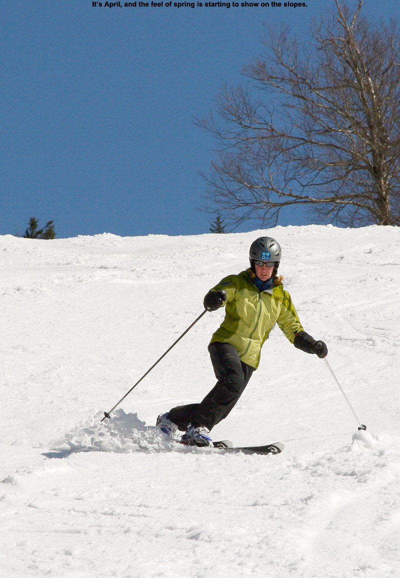 Some snow hanging on over by Stowe’s Gondola terrain while the leaves just start to emerge on the trees at the base elevations