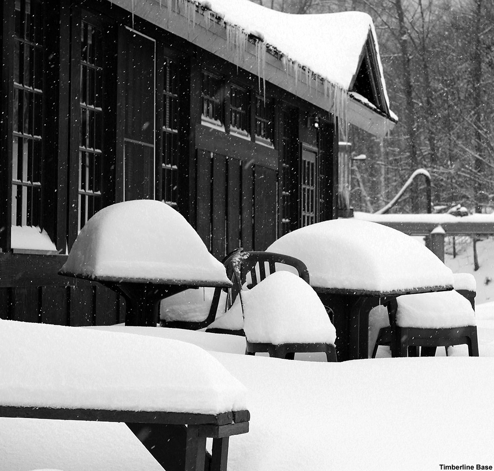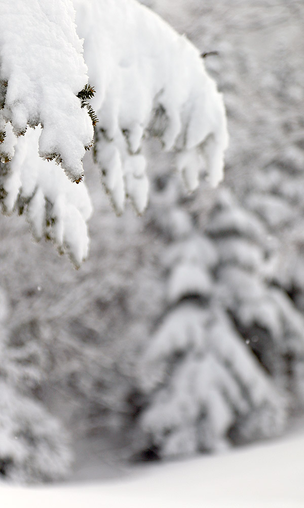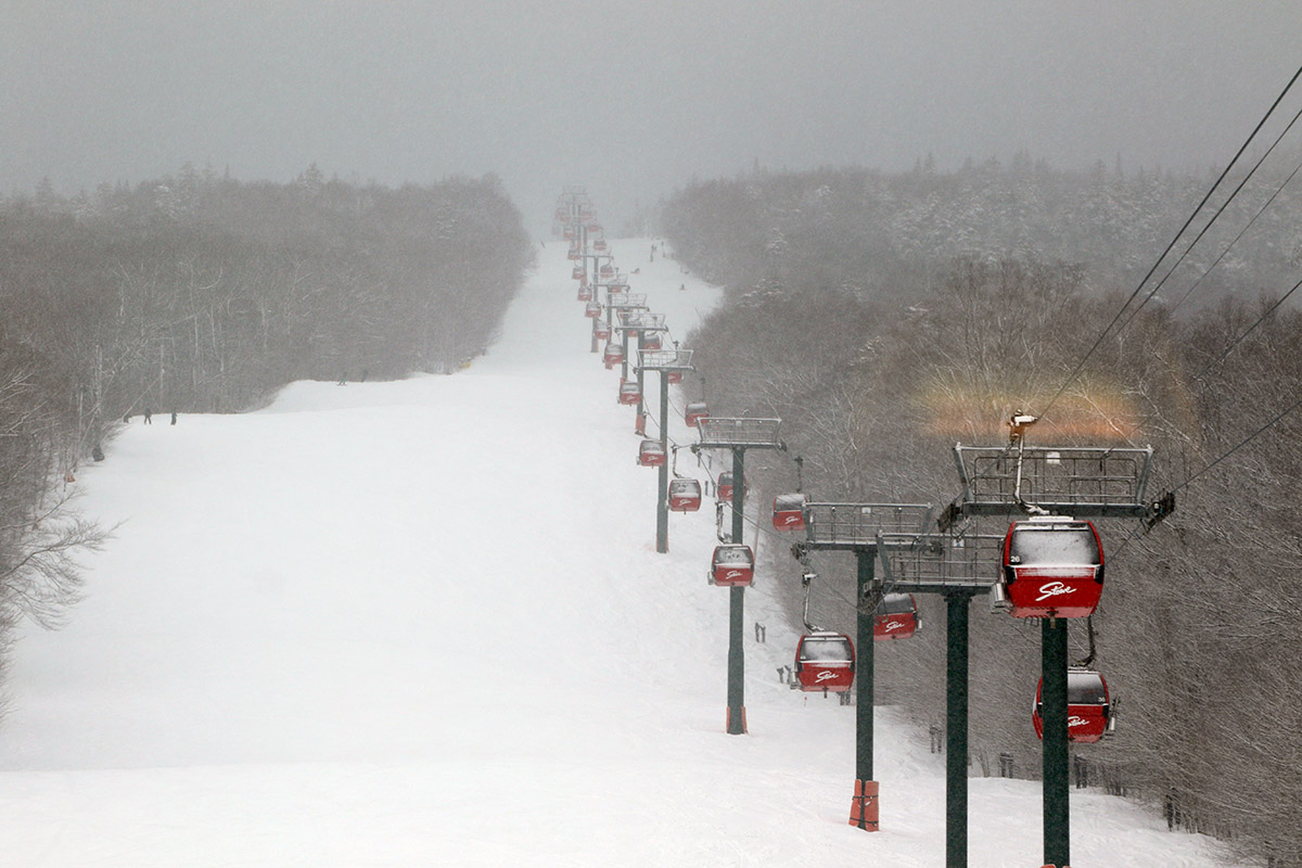We’ve had another storm system in the area this weekend. This one began fairly slowly with respect to snow production, but it’s starting to put down some dense accumulations of powder for a good freshening of the surfaces. The next round of snowfall was forecast to start later this afternoon, but it was already snowing at Stowe when we arrived before midday.