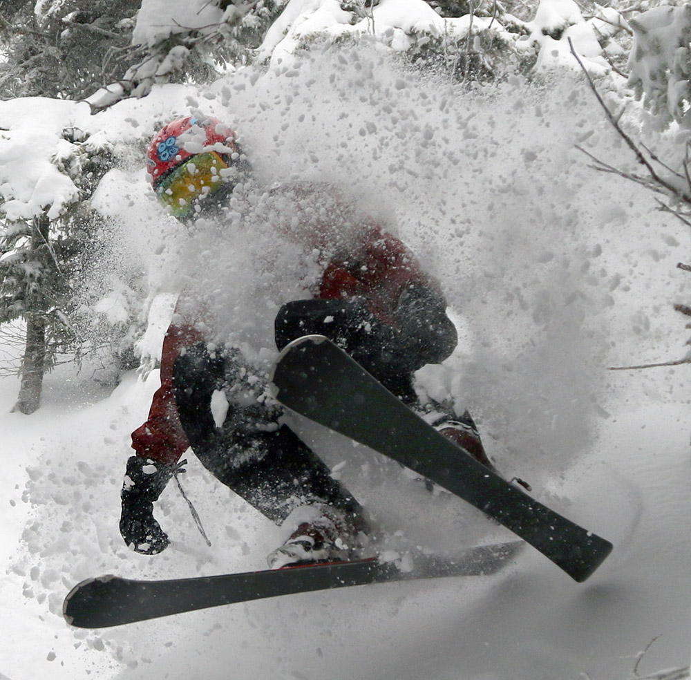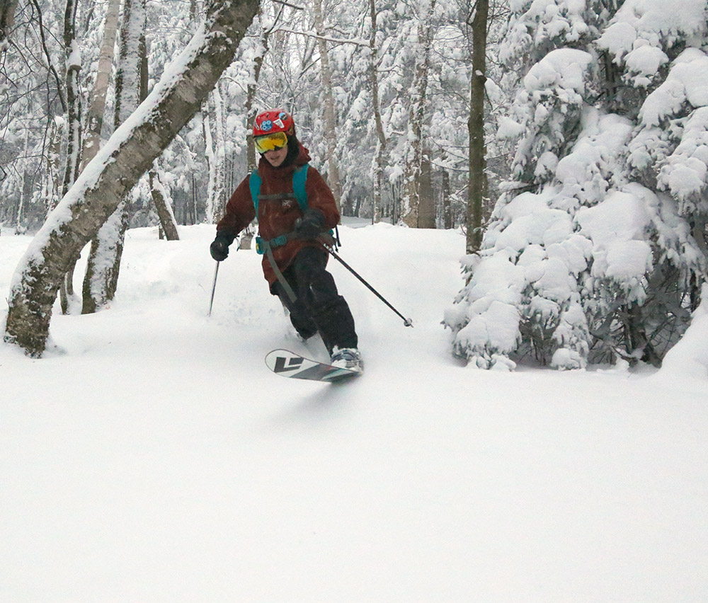 The idea for today’s tour was to head partway up the Bryant Trail, connect over to Gotham City, catch some turns in the Gun Sight area, and then finish off the run with some lower glades. Depth checks revealed about 6-12” of surface snow at Village elevations, and that increased to 12-16” in protected areas on the backcountry network where to topped out around 2,400’ or so. There were some nice powder turns in that snow, but the base depths are very inconsistent. In some spots the base snow was sufficiently deep, but in others there was little to no base, and obstacles like rocks and logs definitely needed to be avoided. Dylan’s most memorable quote of the day came after he had an altercation with some sort of obstacle under the snow and took a tumble. He was on Erica’s fat skis, and we were really hoping it wasn’t a rock. D quickly reassured me… “It was a log”.