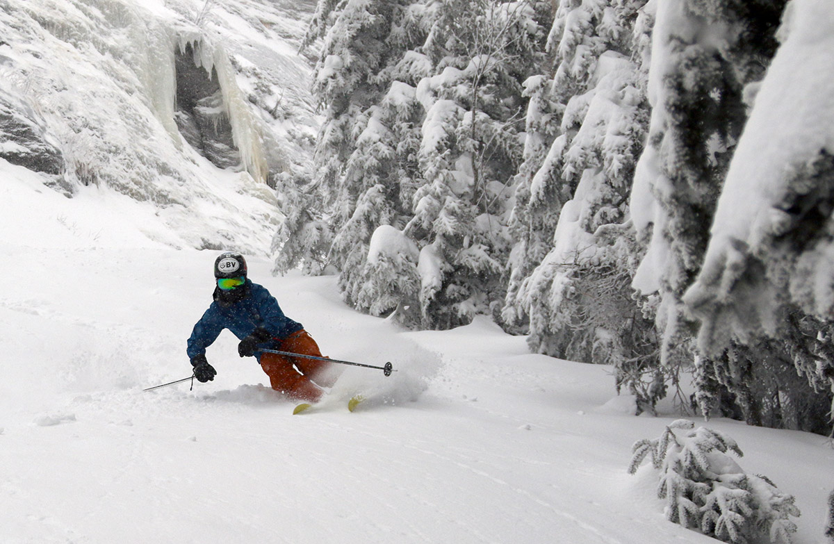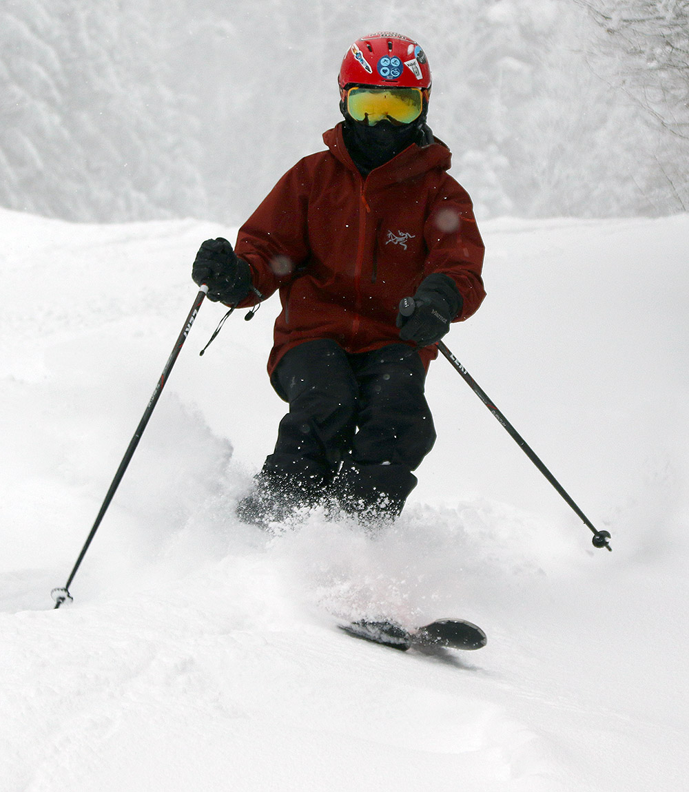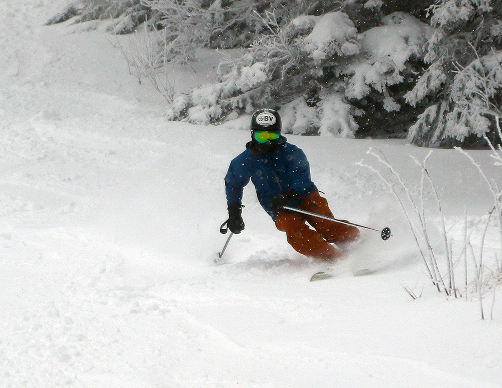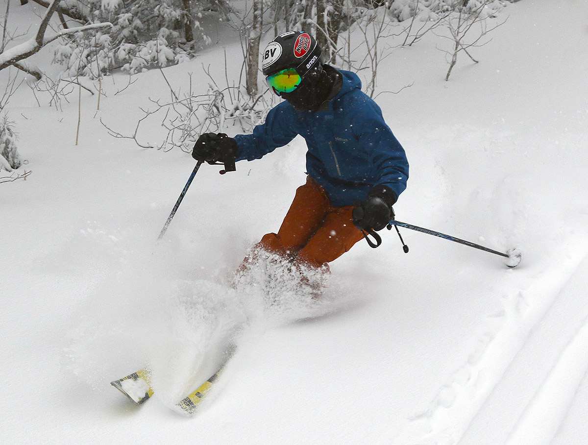 With the addition of snow from Winter Storm Gage Sunday through Tuesday, ski conditions have seen substantial improvement over the past few days. I was already pleased in general with the conditions I found at Bolton Valley yesterday, and I expected them to easily move up another notch with the follow up system that came into the area last night. As of this morning in the valley we’d already picked up over a half foot of snow (with a solid shot of liquid equivalent) between the two storms, and yet another round of snowfall was building in as we headed up to the mountain around noon.