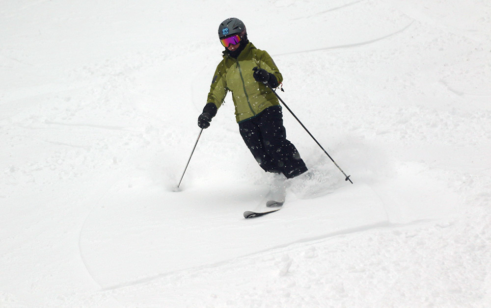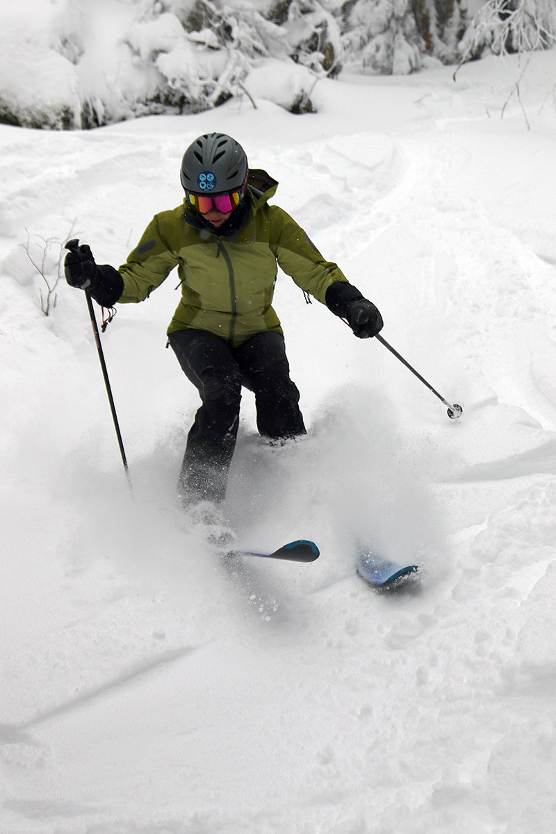 “In general, I found 6 to 7 inches of powder in protected areas along the route, which was enough for mostly bottomless turns on low and moderate angle terrain.”