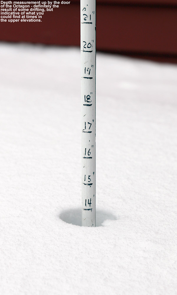 So far, this week has done a nice job of rejuvenating the local ski conditions, with a total of four storms expected to affect the area. We had a couple of very minor storms earlier in the week that dropped a few inches in total for the mountains, and then a larger storm that hit the area on Thursday. That one actually wound up being our largest storm of the season to date here at the house, dropping almost a foot of snow.