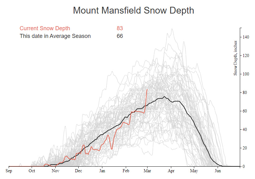 As of last week, the ski areas in the state had ceased operations, which obviously has the potential to be a blow to many employees and ancillary businesses. All things considered, this timing hasn’t been too bad for the resorts, since they would all be tapering down winter services and staffing in the next few weeks to some degree anyway. From the skier’s perspective, the timing of these resorts hasn’t been horrible either – weather has been in that spring doldrums stage for the past couple of weeks. The usual thaw-freeze cycles that we get at this time of year have taken place, and we haven’t had any big storm cycles to resurface the slopes nor beautiful warm days with copious sunshine to soften them up. We last skied back on the 8th for the BJAMS ski program at Stowe, and regardless of the ski area closings, there hasn’t been much to entice us out since then.