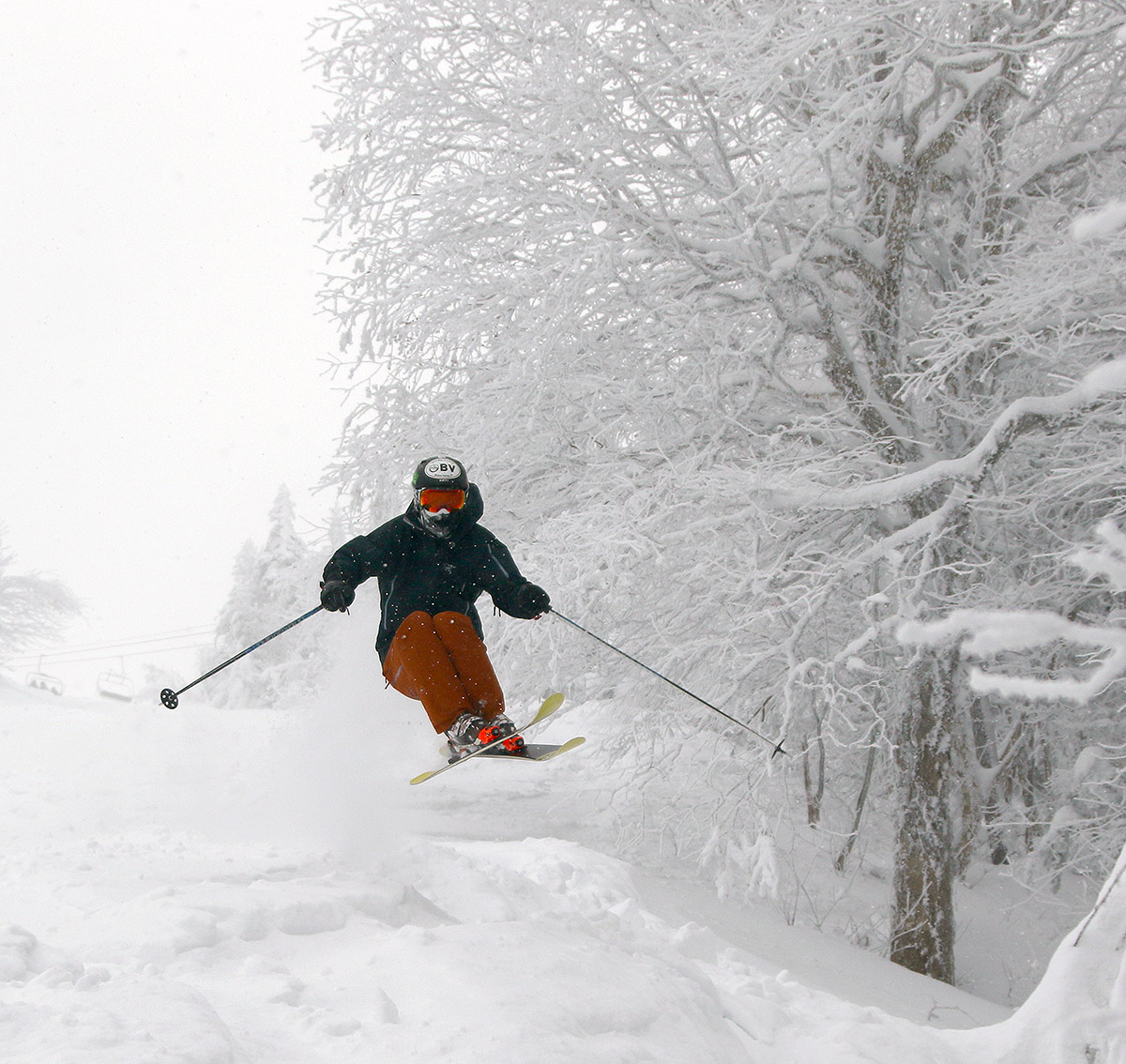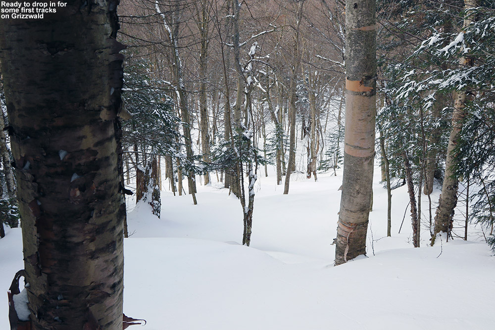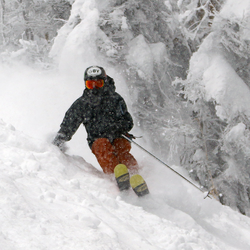 Ty charging through the trees of Timberline today as we get out for some turns during our most recent rounds of snow this week at Bolton Valley.