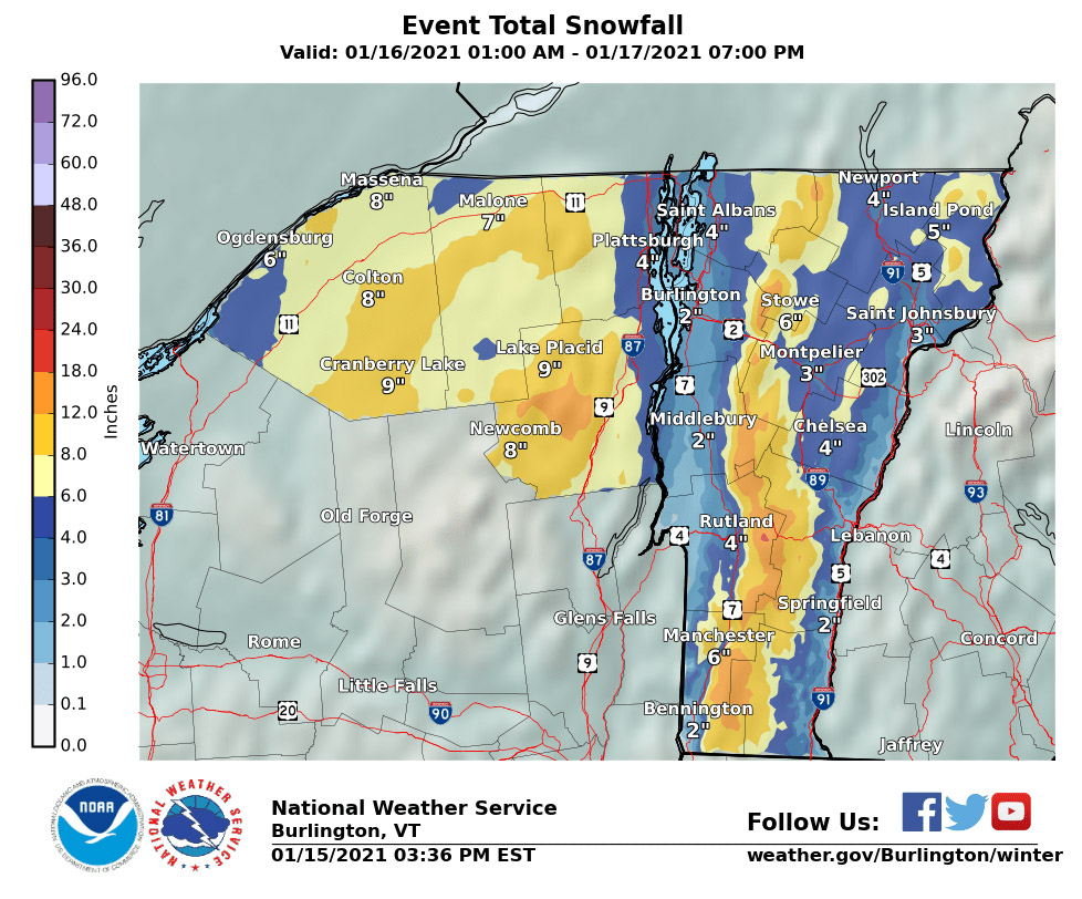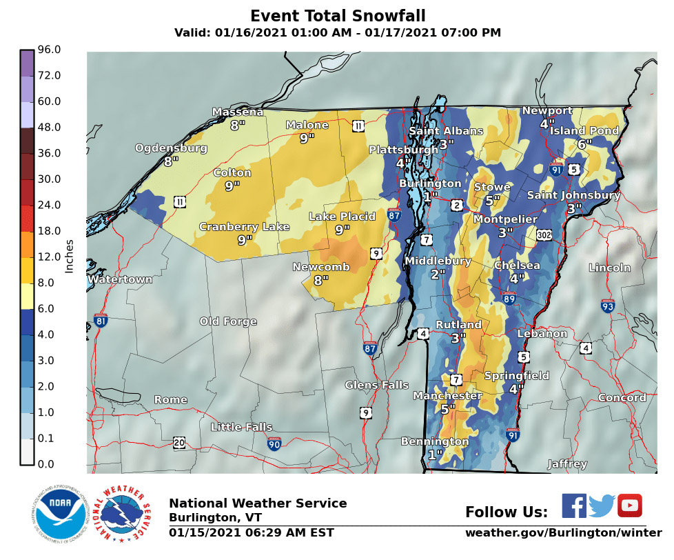 The family was up at Bolton Valley for a ski session this morning, and the mountain reported an additional 6” of snow as of their early report today, making for a 14” storm total at that point. That will probably go up a bit more for tomorrow since it was still snowing while were there, and indeed the snowfall was heavy at times.