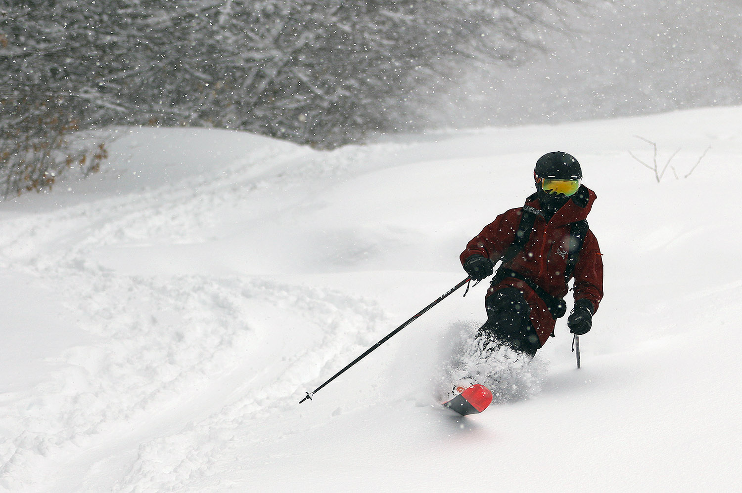 As of this afternoon’s additional snow from the storm, we’d picked up 1.09” of liquid equivalent down at the house, so the mountains must have had at least that much, and whatever they did get, it represented a major resurfacing of the slopes. Ropes were dropping all over the place, and within one trip over to the main mountain, I came back to find that they’d opened up Tattle Tale, apparently even the steep headwall section, which speaks to how meaty this snow was. They even had Spillway open on all natural snow, and that’s a steep minefield of boulders and stumps. I figured people were just poaching it until I saw the rope opened at the top.