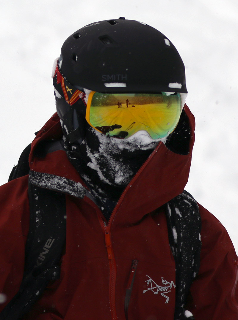 Yesterday delivered some decent lift-served turns, as well as a quick Wilderness tour with some powder, so today I headed back up to the mountain for a ski tour with Dylan. With more time than I’d had yesterday afternoon, we went a bit farther afield in the Wilderness area in search of untracked powder. The untouched snow was definitely harder to come by this afternoon, because there has been heavy ski touring traffic this weekend. The amount of traffic is relative of course, and nothing like you’d get with lift-served skiing, but after an entire holiday weekend worth of people touring, the untracked snow on the trails of Wilderness had been just about picked clean. One factor in the apparently heavy traffic is that folks aren’t yet using all the acreage of tree skiing; the trees were generally untouched because people know that it’s still just a bit too thin in there for the skiing to be practical. I saw an occasional track of people who had headed into the trees, but you could tell they weren’t quite ready. If we get one more good snowstorm with an inch of liquid, then the low-angle trees will be in play.