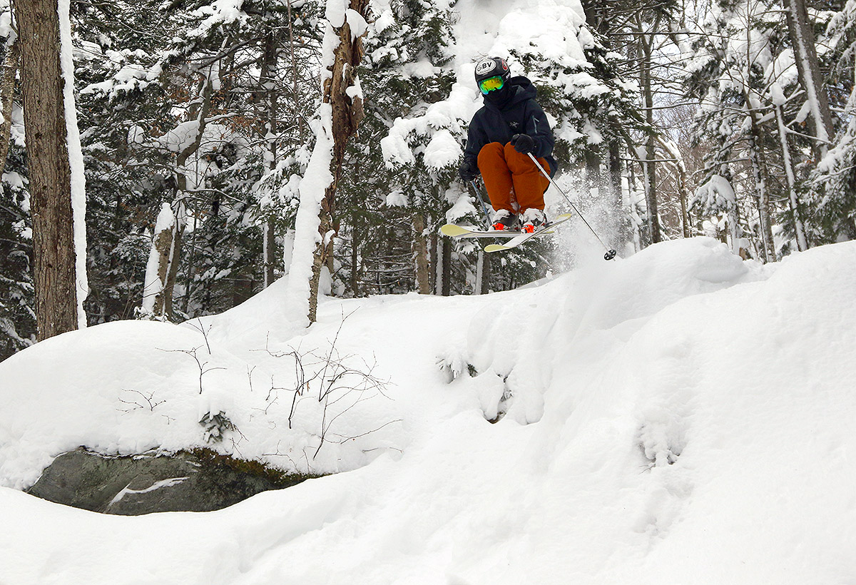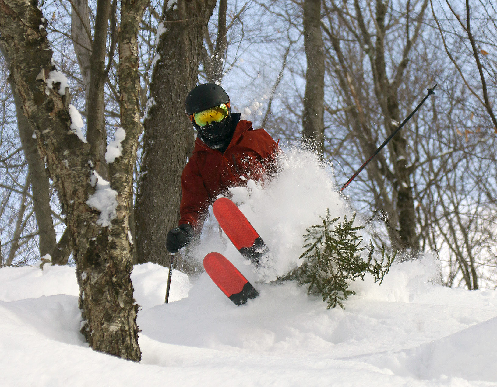 We just stuck to Timberline, and skier traffic was low enough that there really wasn’t any need to go anywhere else. We started with a run on Adam’s Solitude, but spent the rest of the day in Doug’s Woods and Doug’s Solitude. Bolton is reporting 12” in the past 48 hours, but we were typically finding 12-16” off piste in the areas we were skiing. The snow was absolute champagne, definitely in line with the ~2% H2O I’d gotten from my previous three snow analyses at the house, so it skied like a dream. The boys had fun throwing themselves off just about any stump, bump, log, tree, ledged, or cliff they found. And, Mother Nature even decided to treat us with some sun during the morning to let us get a bit more pop out of the photos from the session.