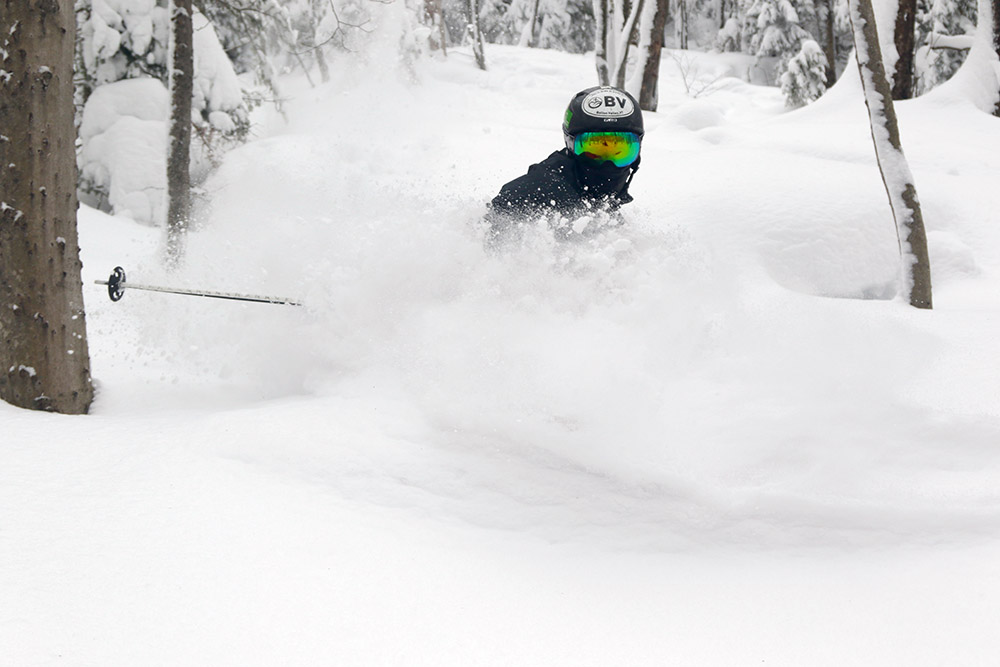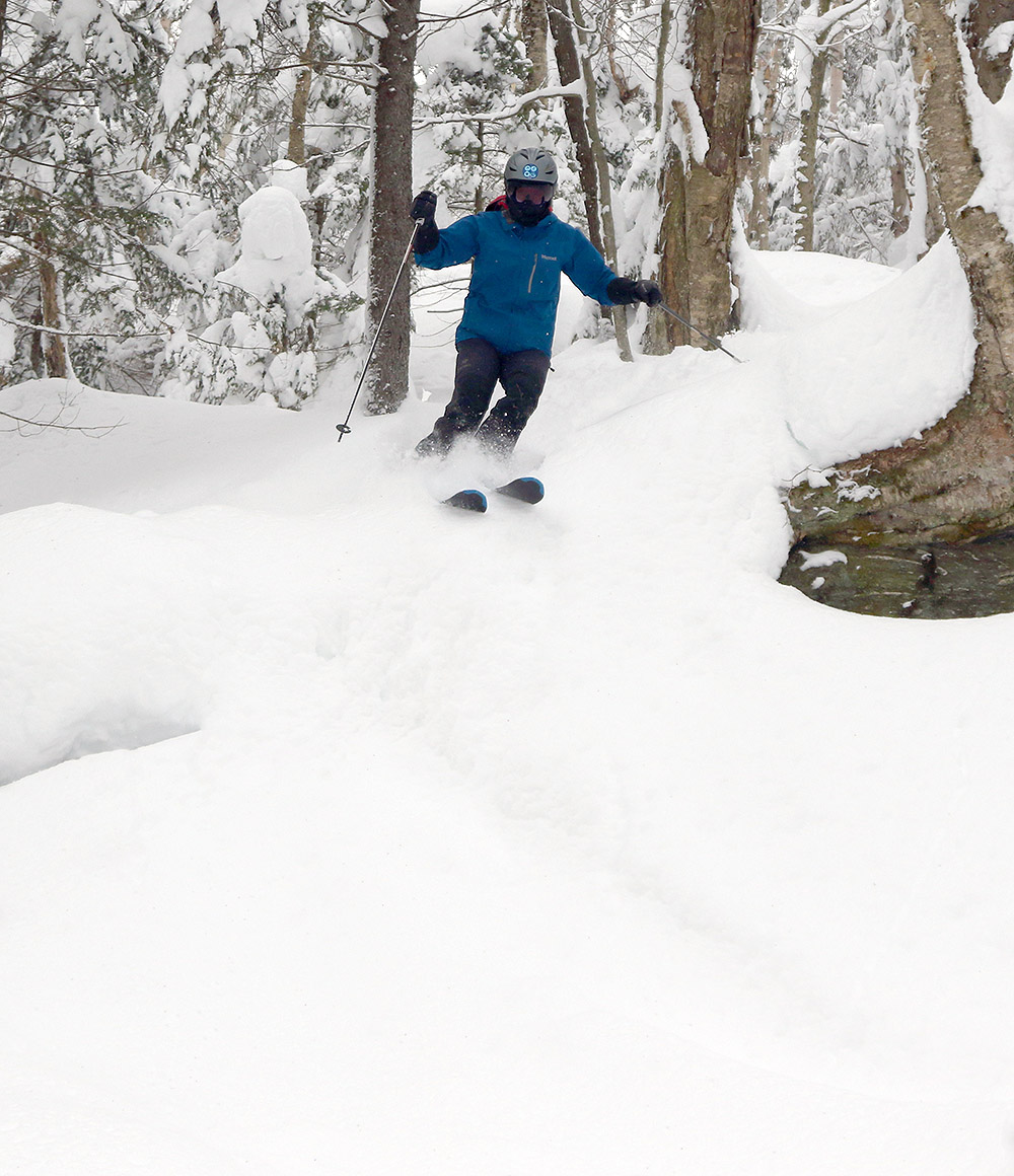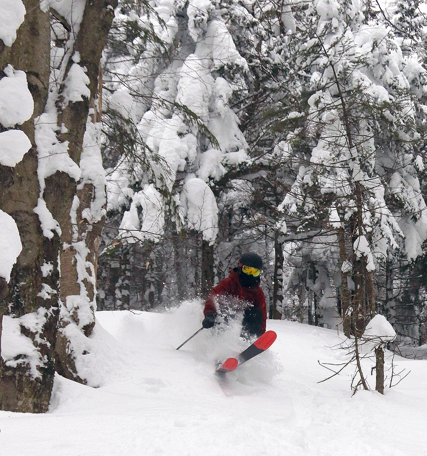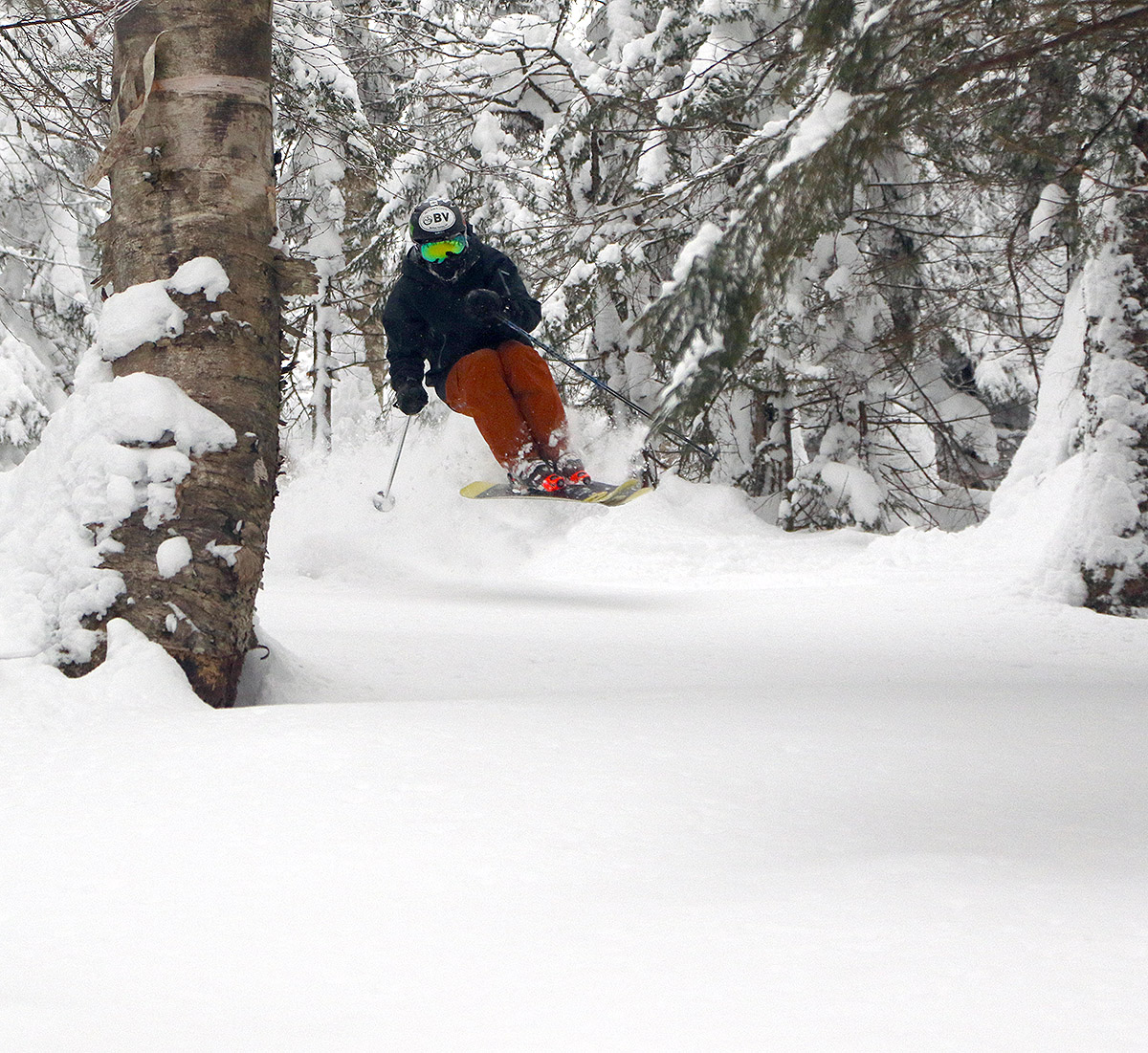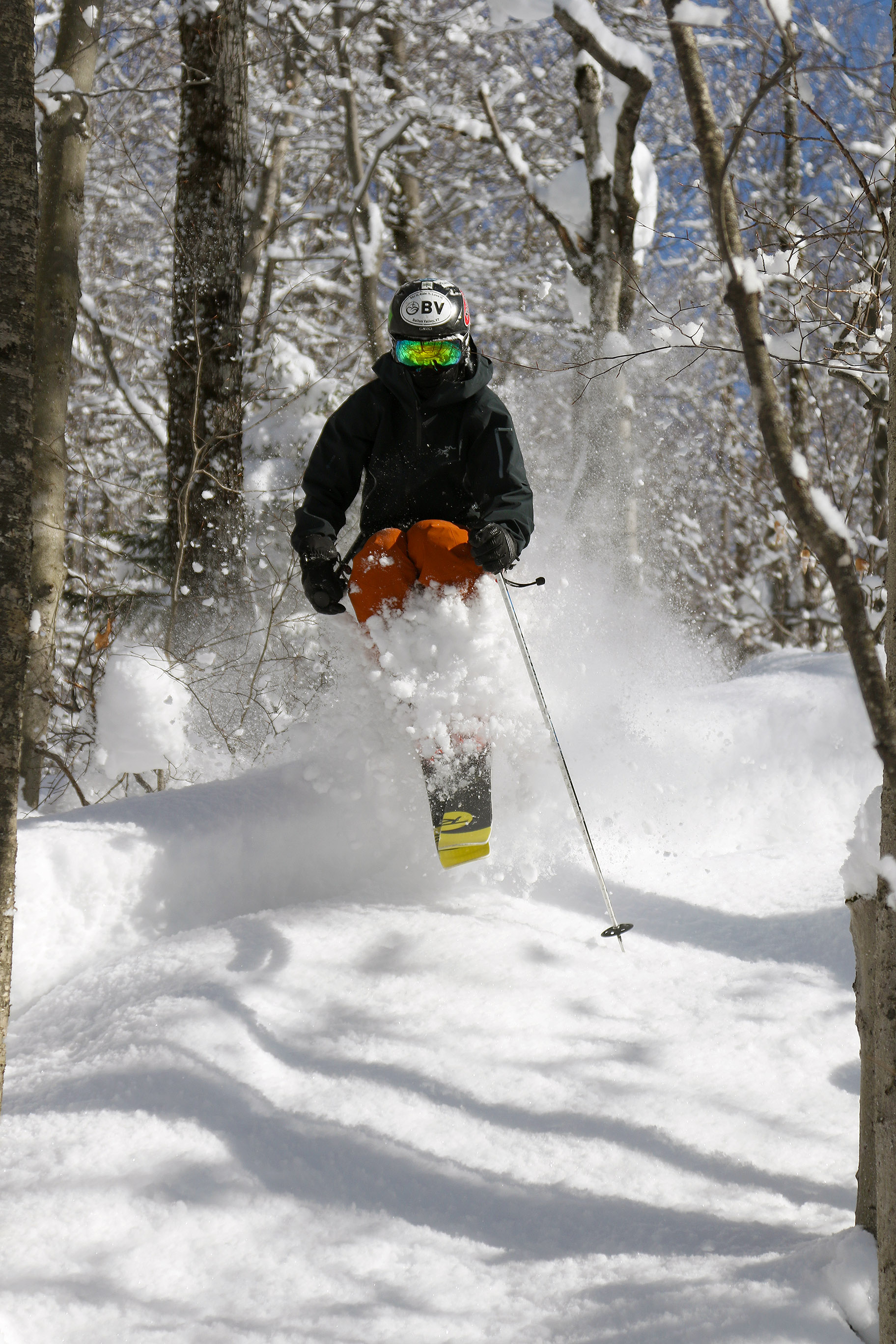 Ty blasting through a bit of our surprise powder at Bolton Valley this morning.