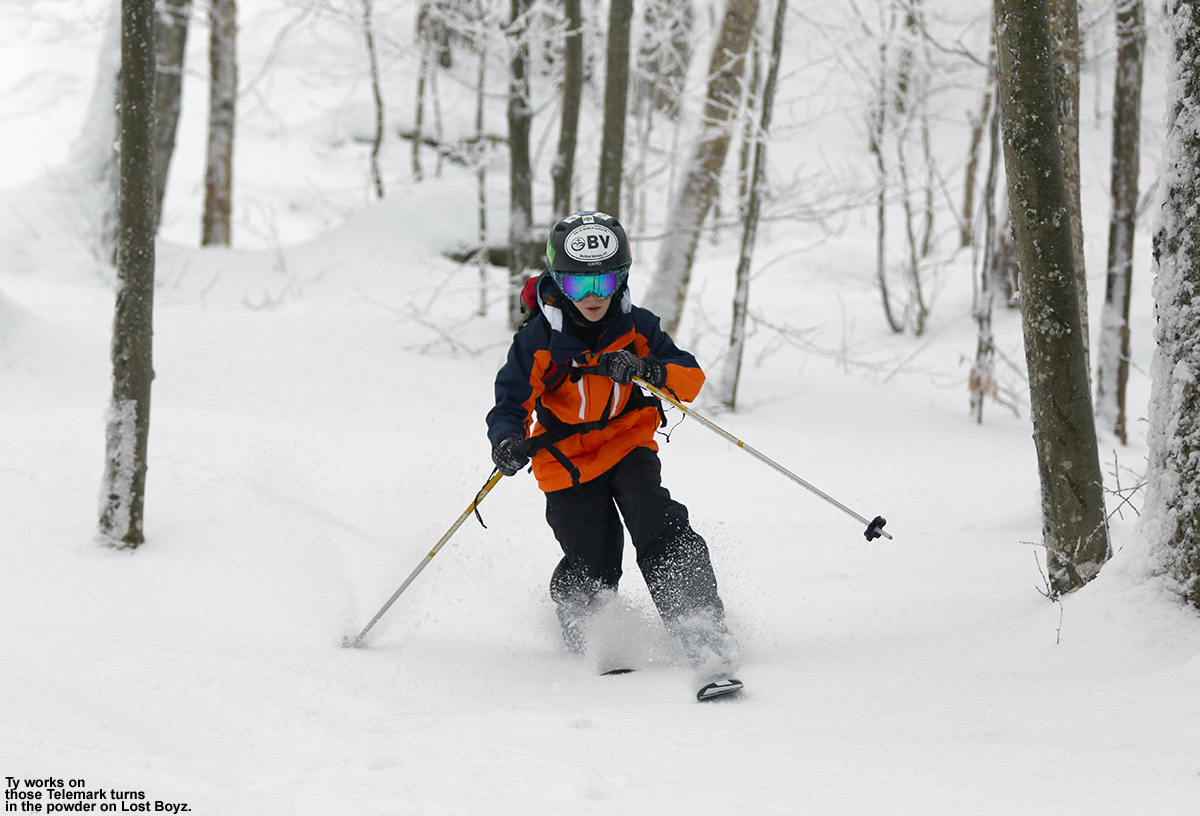 It would have been great if the upslope system we’ve had in the area over the past couple of days delivered more than an inch or two of new snow, but putting that on top of the 9” from the midweek event has definitely kept the off piste conditions respectable at Bolton Valley. The resorts is reporting 11” new in the past week, and the bulk of that must be the sum of those two events. Not surprisingly, that powder has settled a bit over the past few days, and that actually helps out somewhat with respect to how it skis. When that first round had fallen on Wednesday, it really was so incredibly dry that you sank right through it and got down to that relatively firm subsurface, but the settling, and the addition of a couple more inches that wasn’t quite as dry, gives you a bit more underfoot to cushion things.